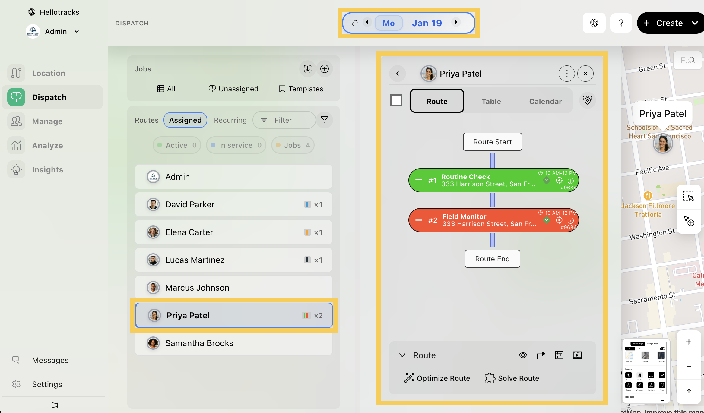 Step 3: To get a better overview of the day and Job progress, select the date and team member, then add them to the board.