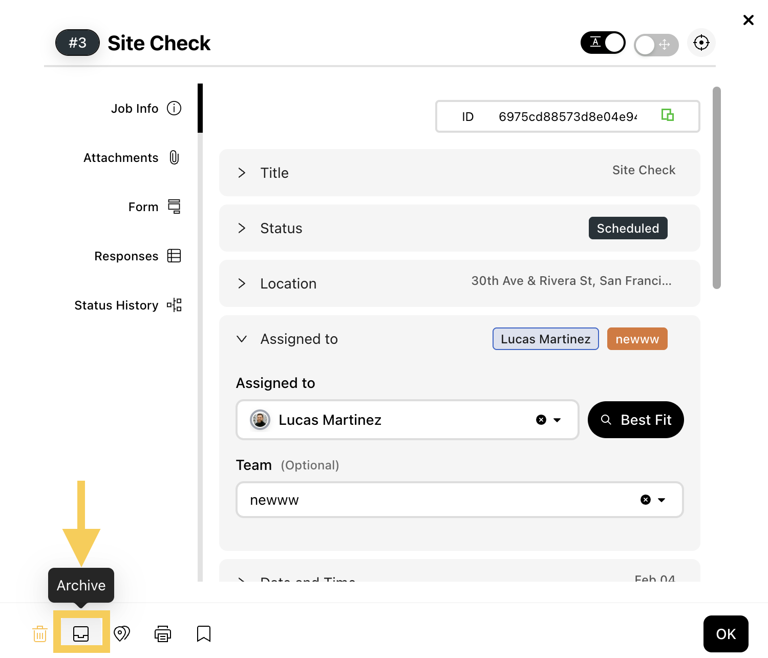 Step 3: From the Job overview, click the Archive icon.