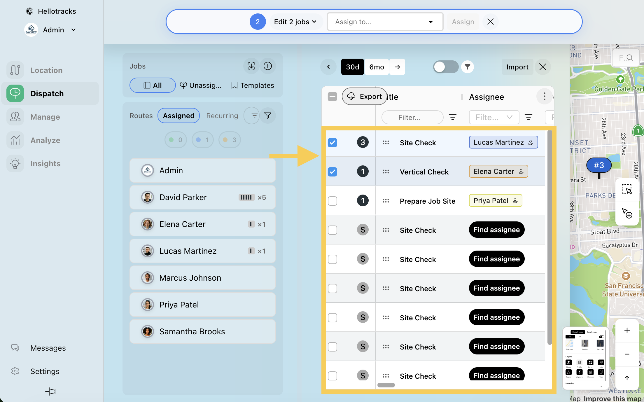 Step 1: Go to the Dispatch menu and select All jobs, or select a team member whose Job you want to archive.