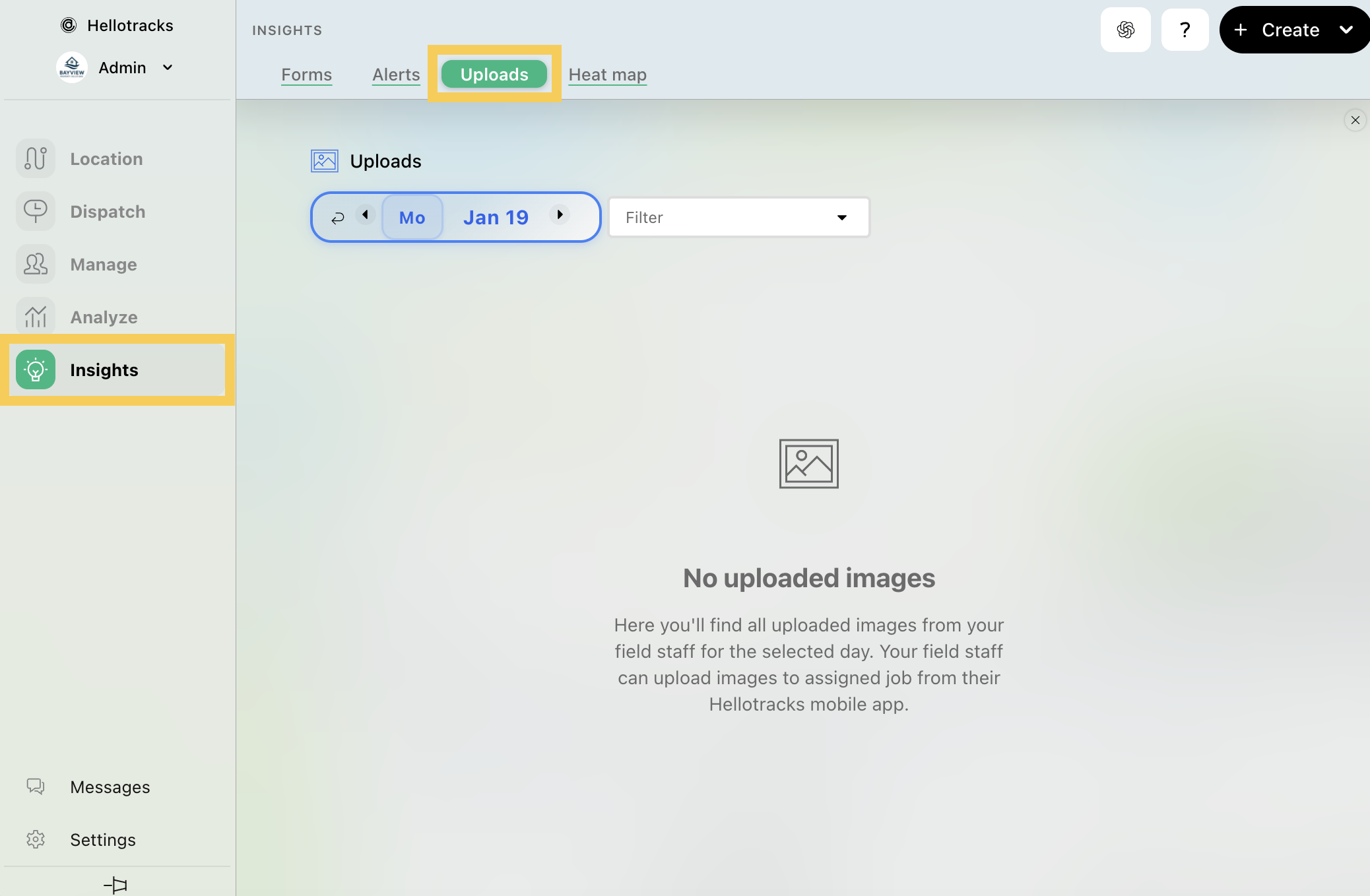 Step 4: To view all the uploaded images from your Workers within the selected day, go to Uploads in the Insights menu.