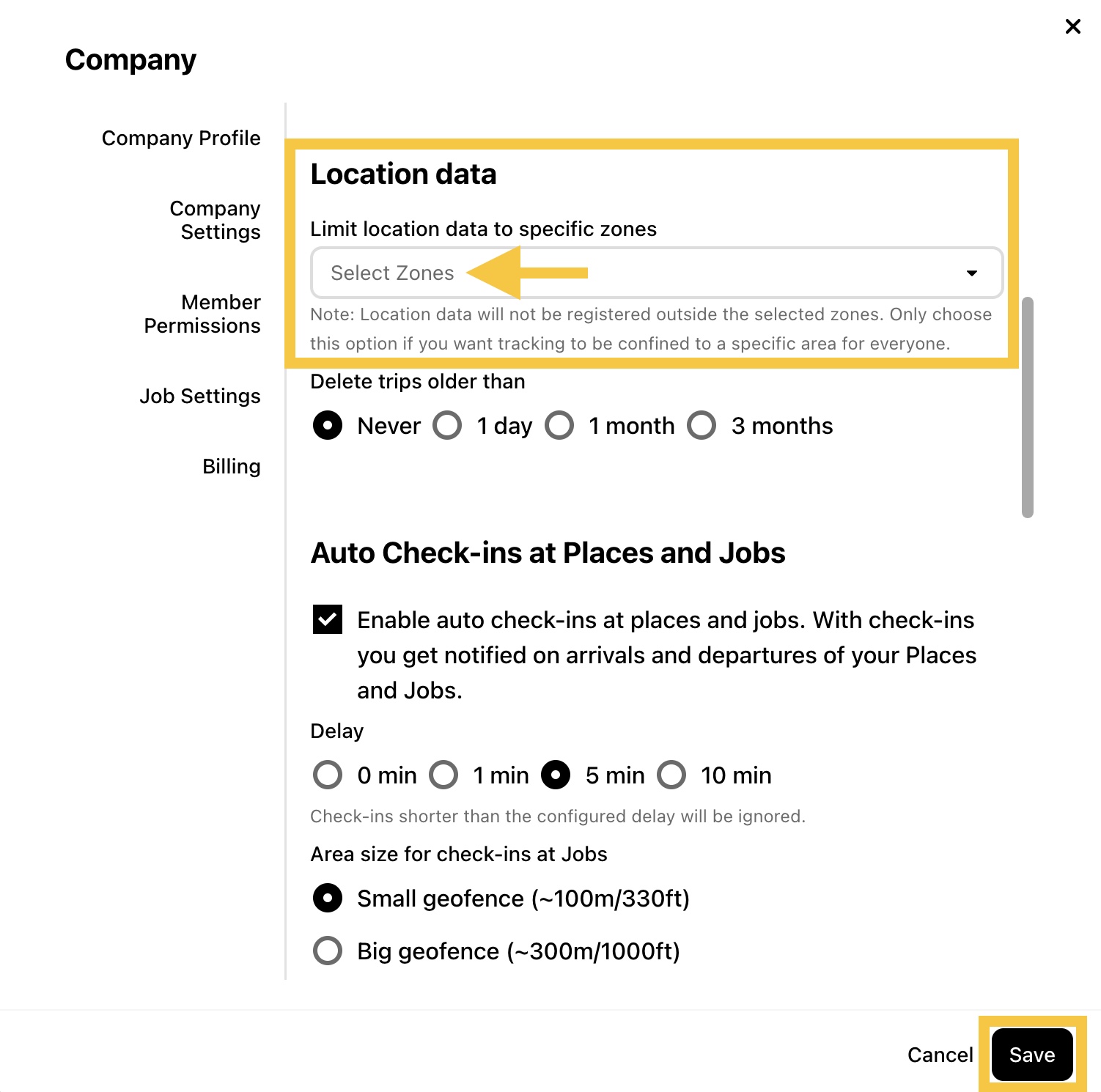 This guide shows Administrators how to limit location data for their team members using Zones. Only use this option if you want tracking to be recorded only within those areas.