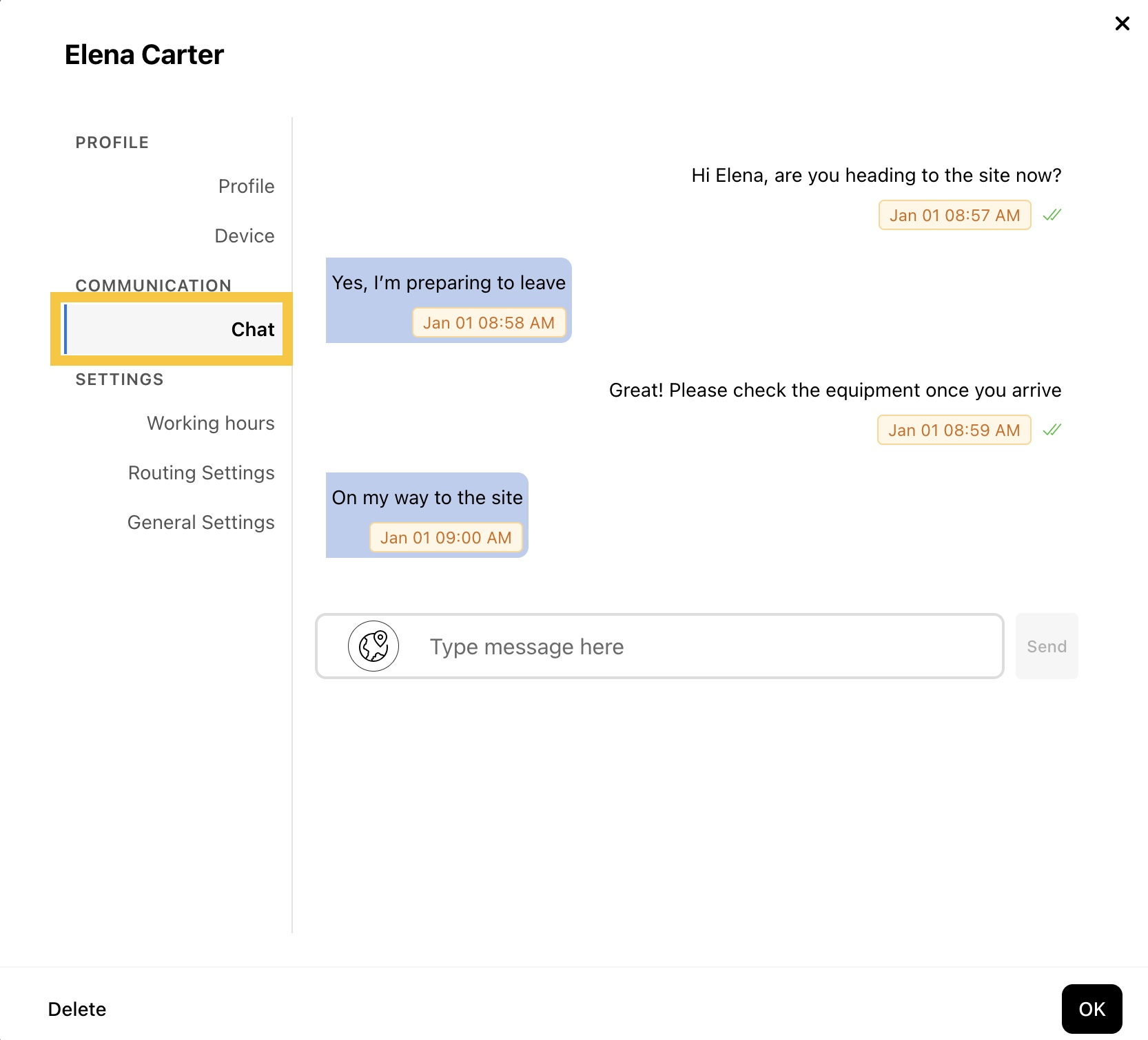 This guide explains how to send messages to your team members in the web dashboard to share updates and important information.