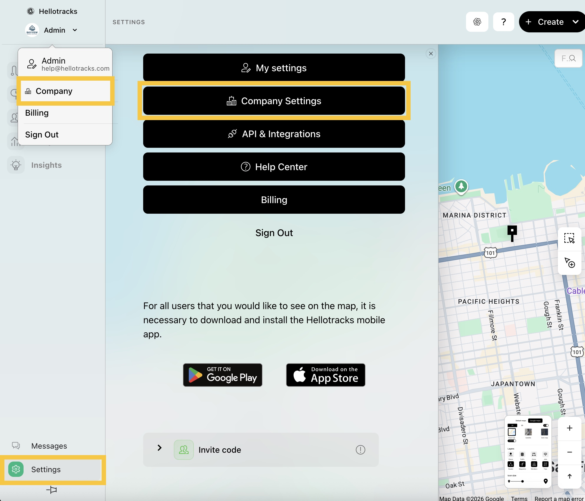 Step 1: Click the dropdown menu next to your profile and select Company. Or, go to Settings at the bottom of the main menu and select Company Settings.