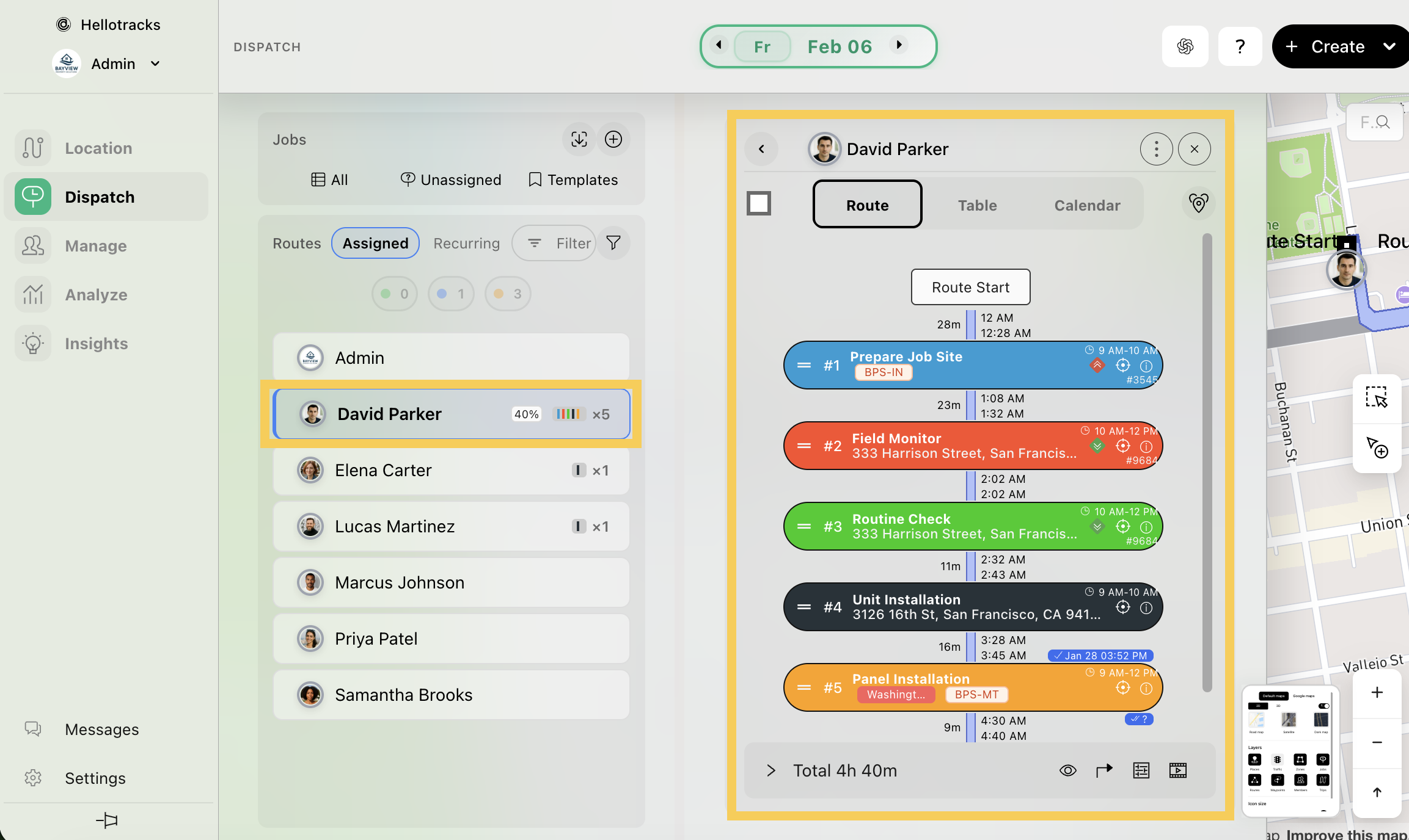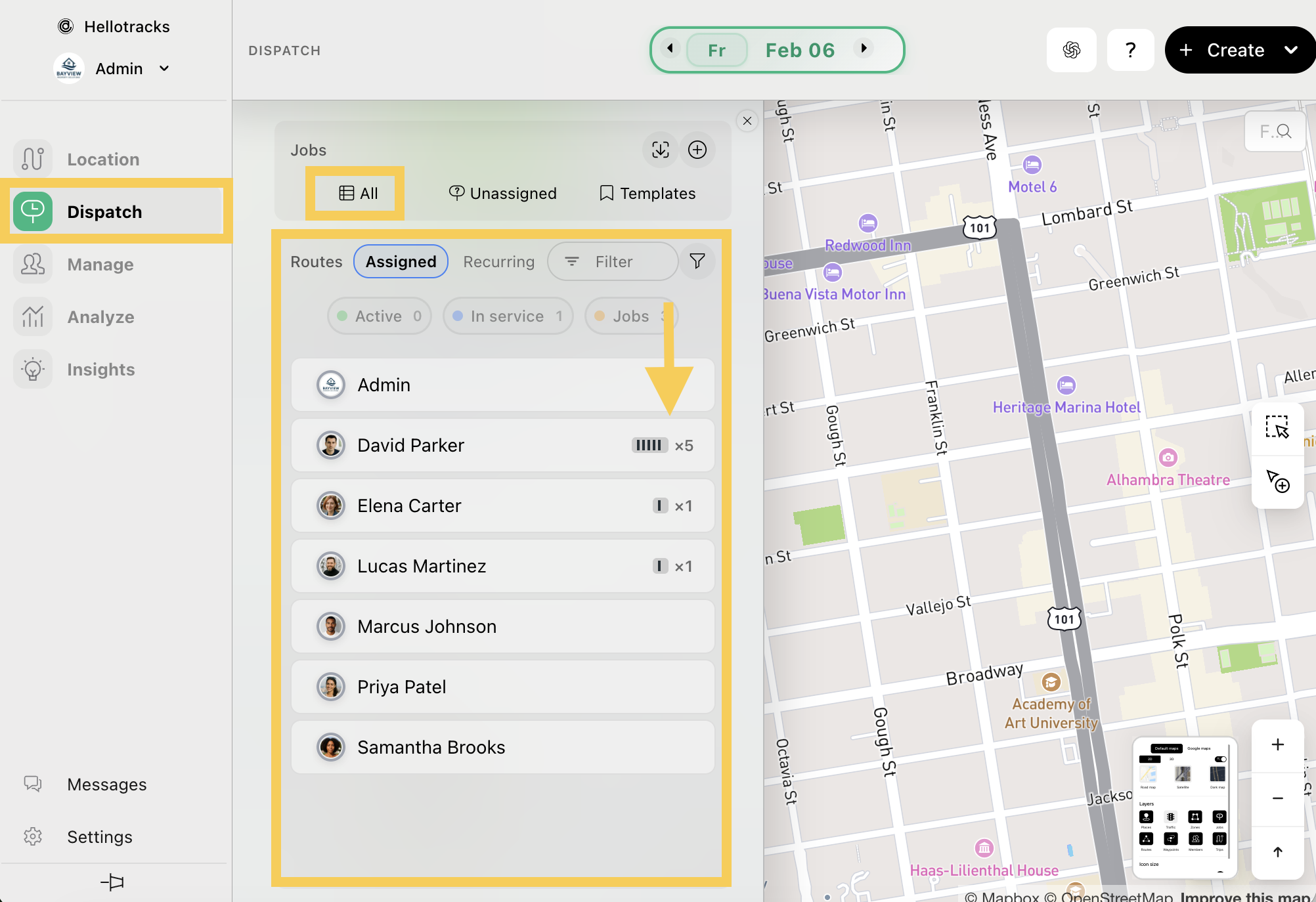 Step 1: Go to the Dispatch menu and select All jobs, or select a team member whose Job you want to track.