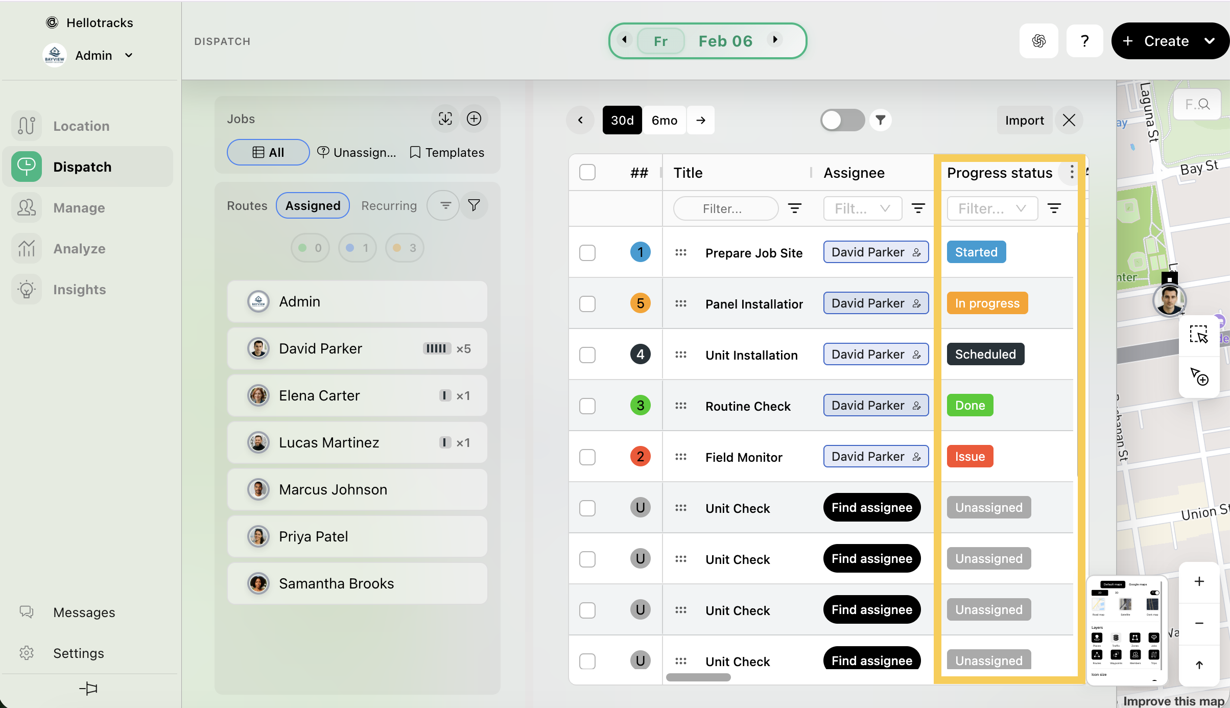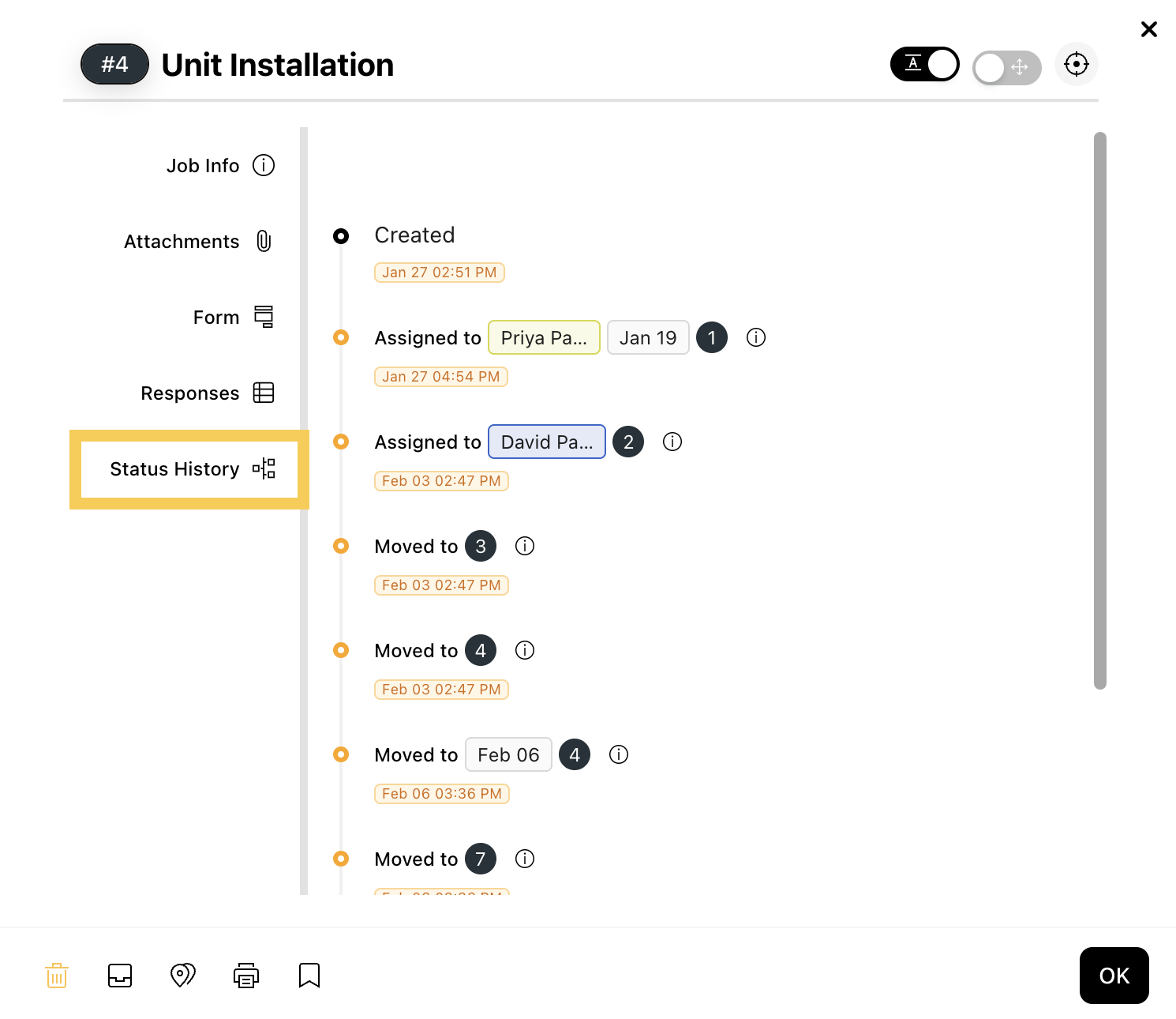 This guide explains how to effectively monitor the progress of your assigned jobs in Hellotracks, using visual cues and detailed status history to keep track of your team's tasks.