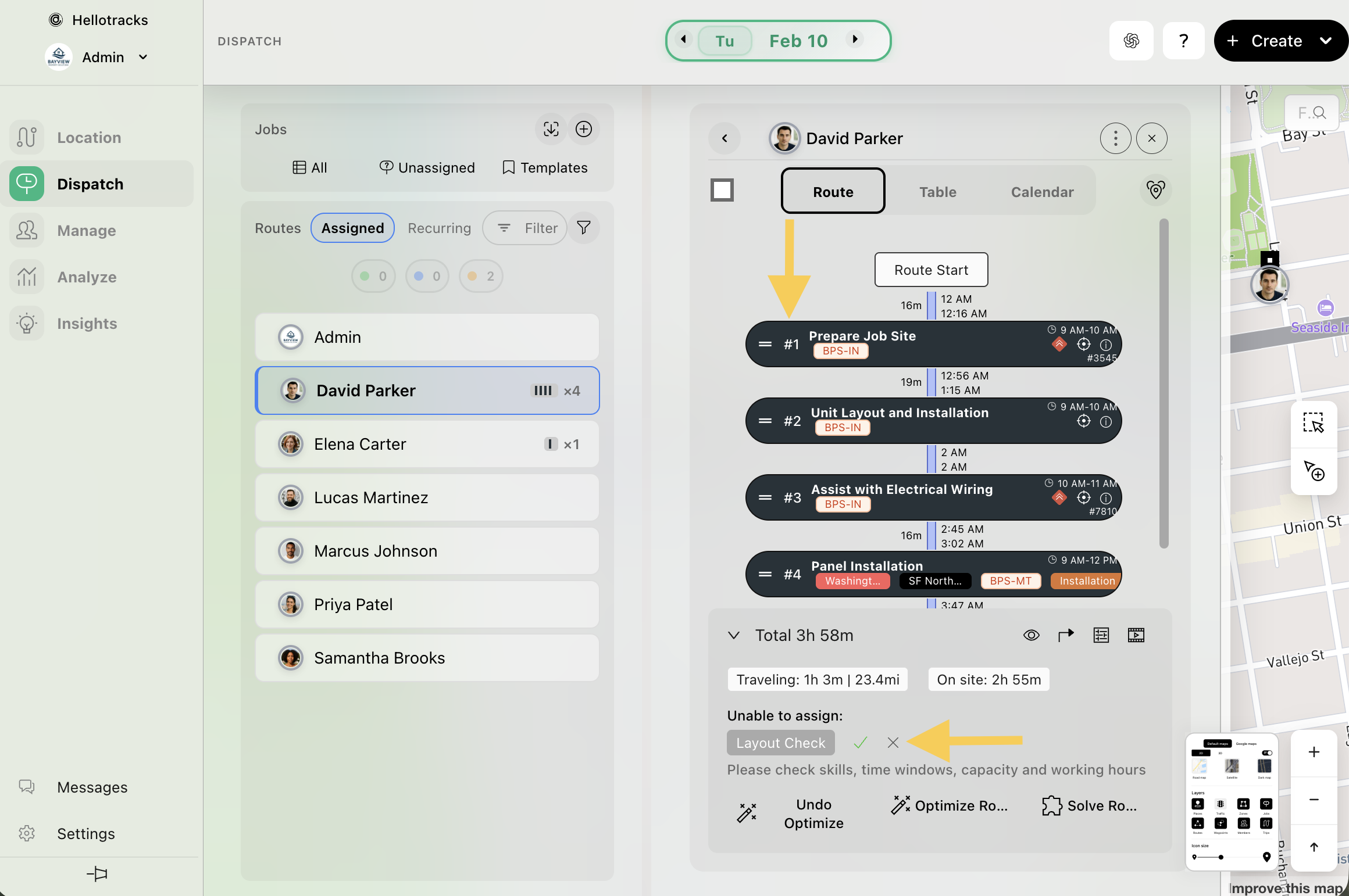 Step 5: Jobs will be reordered for the fastest and most efficient route taking into account the constraints you set. If it doesn't meet the criteria or requirements, it will be automatically unassigned to the member.