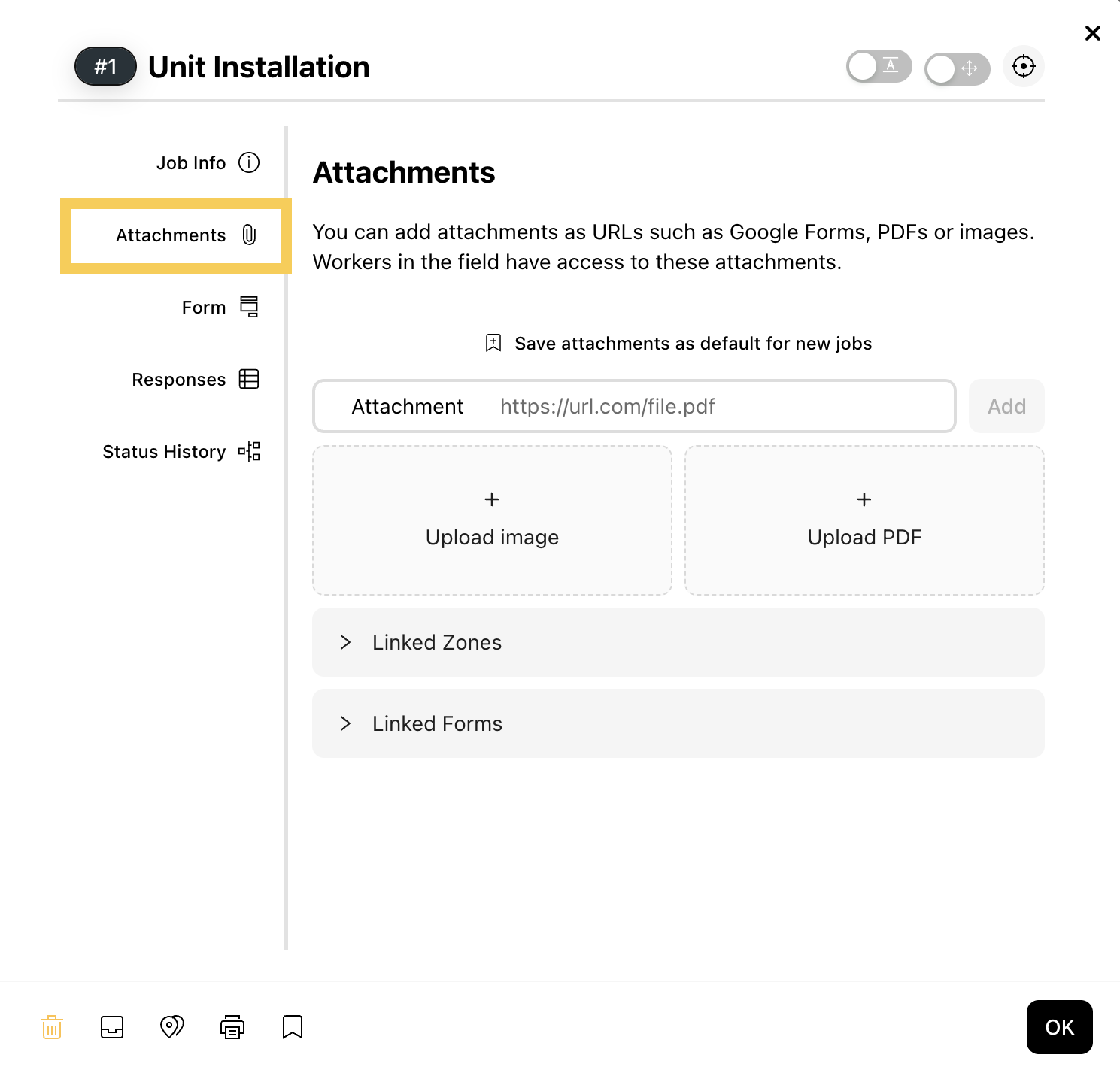 Step 2: From the Job overview, select Attachments.