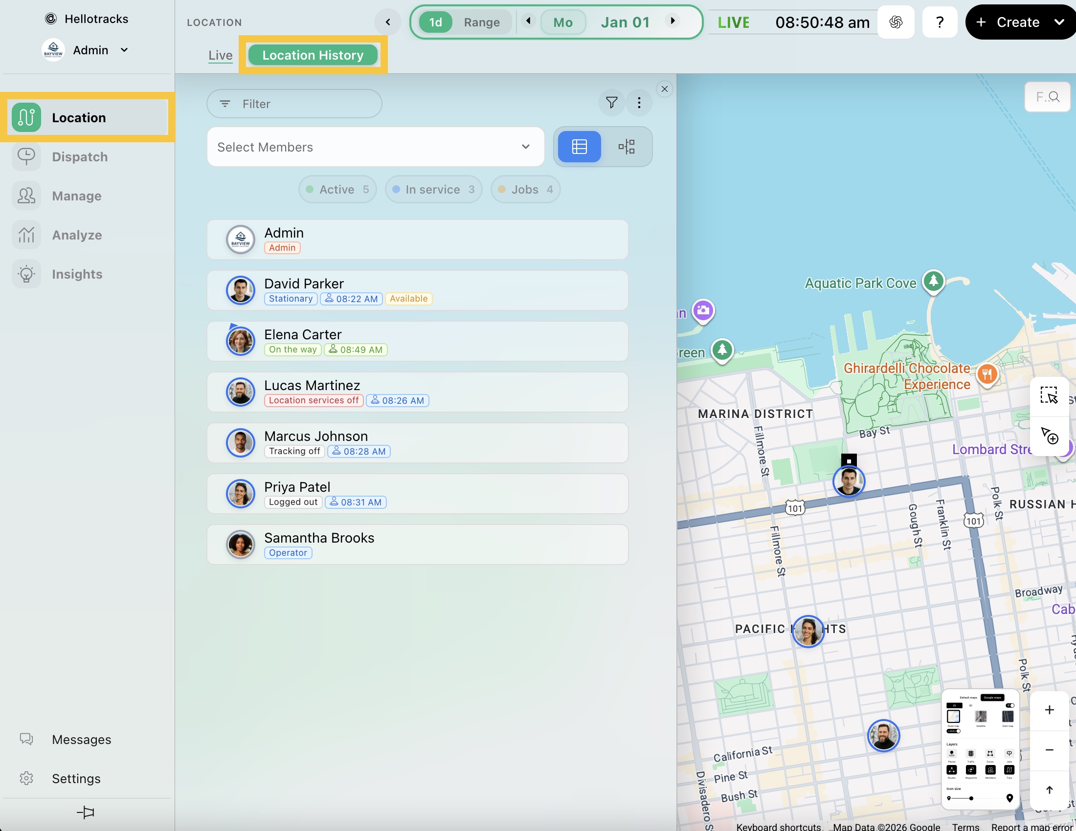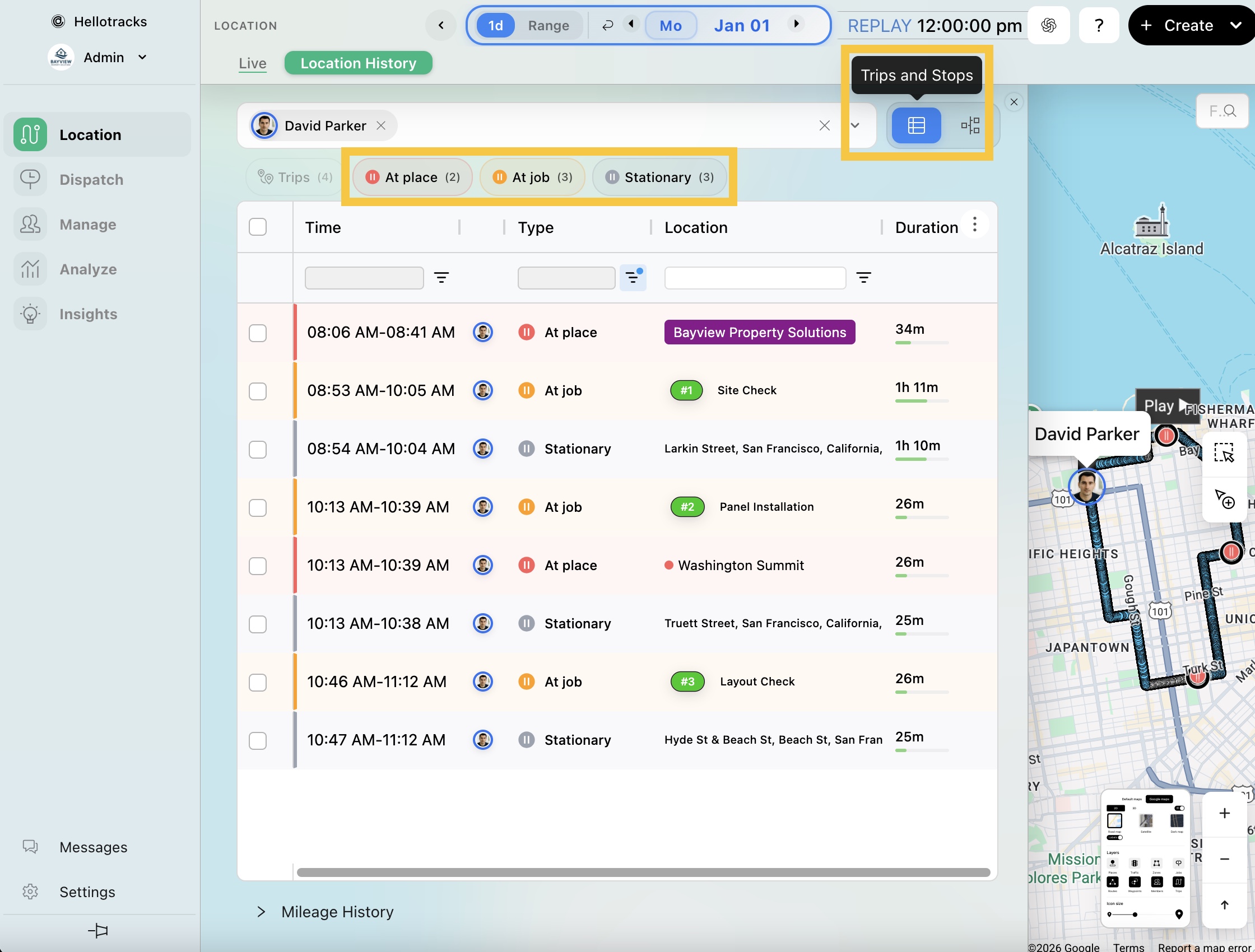 A stop is a recorded pause where a team member’s device remains in one location while tracking is active.