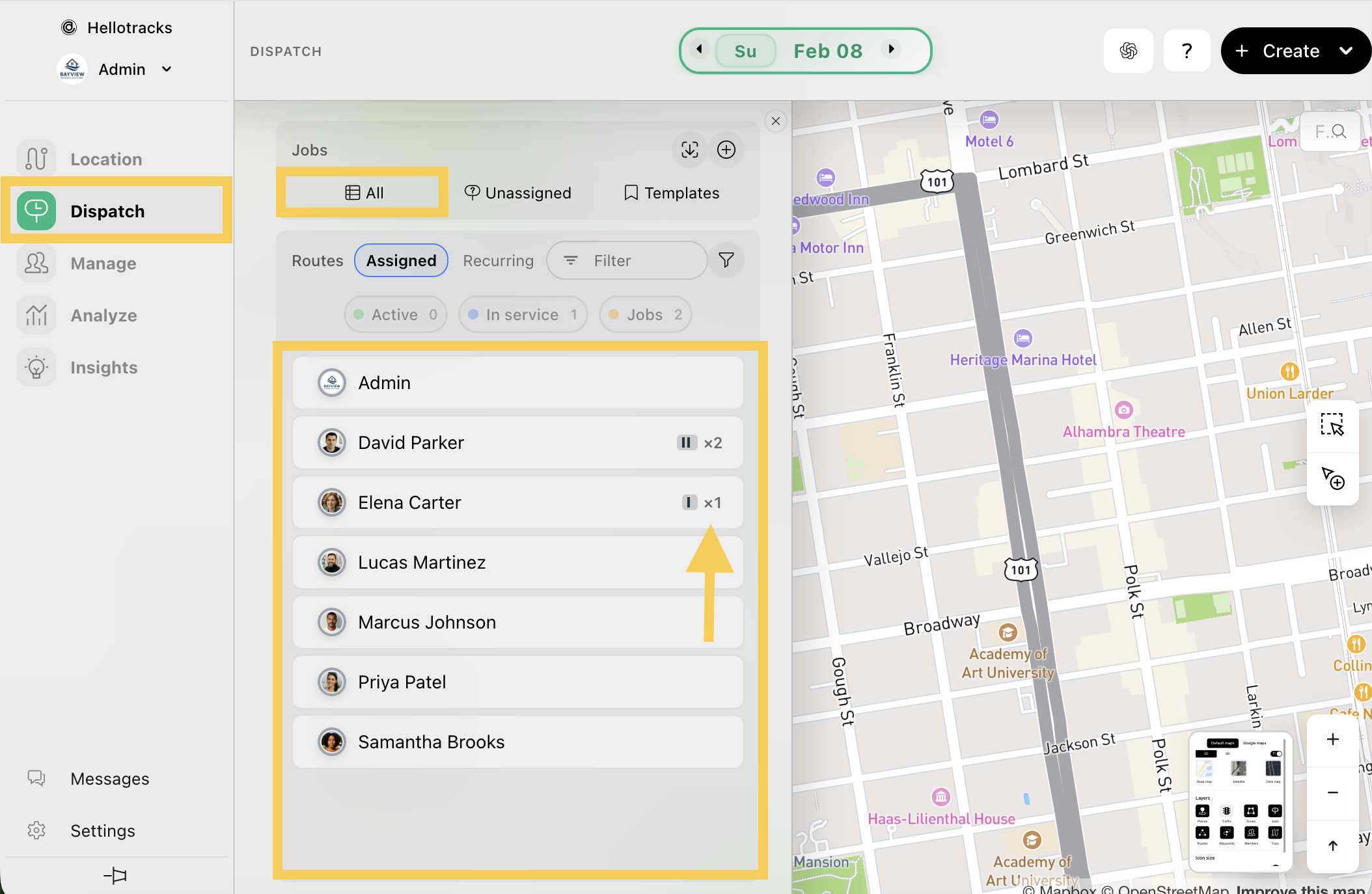 Step 1: Go to the Dispatch menu and select All jobs, or select a team member to see only their assigned Jobs.
