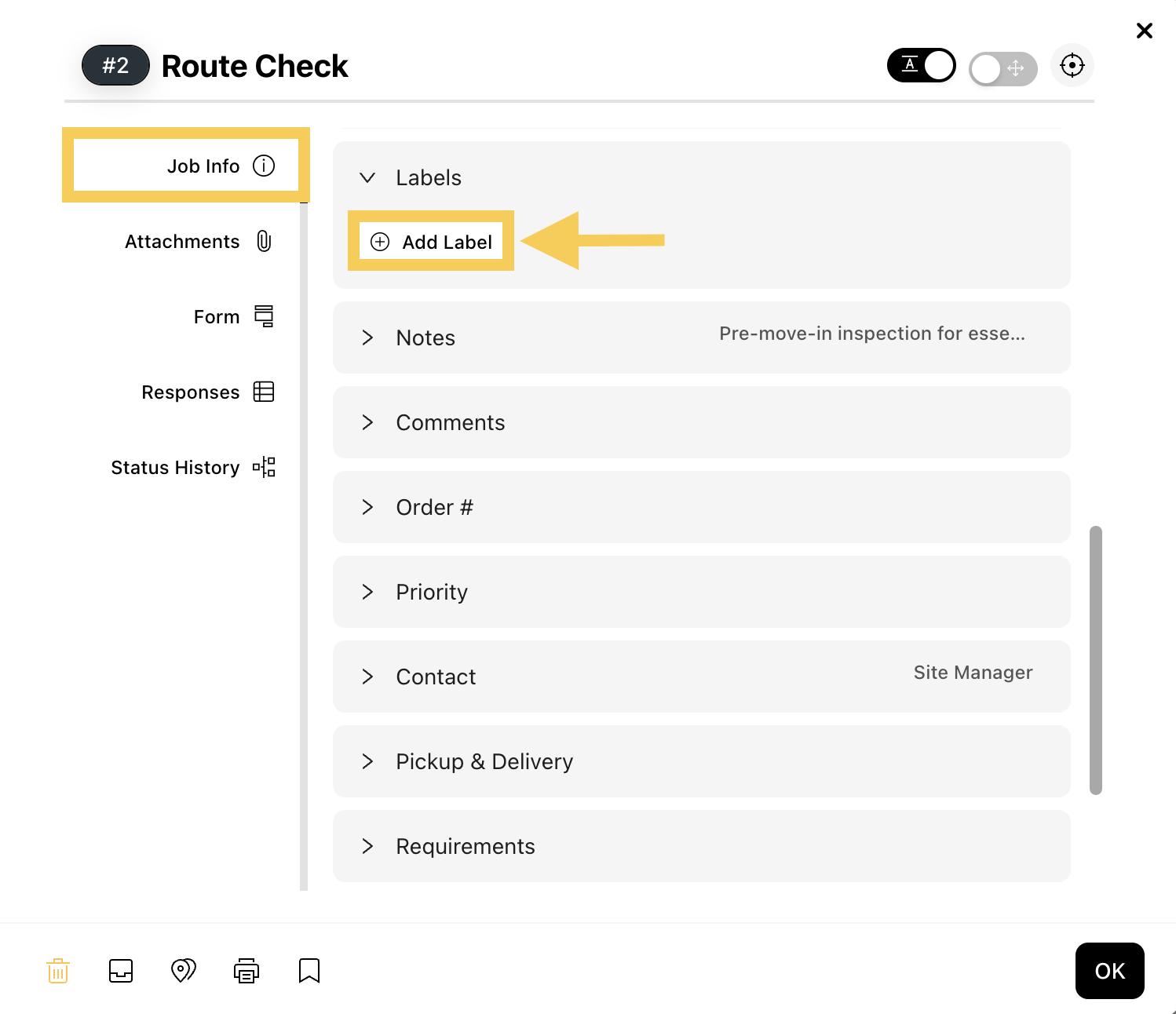 Step 3: From the Job overview, select Job Info and click + Add Label.