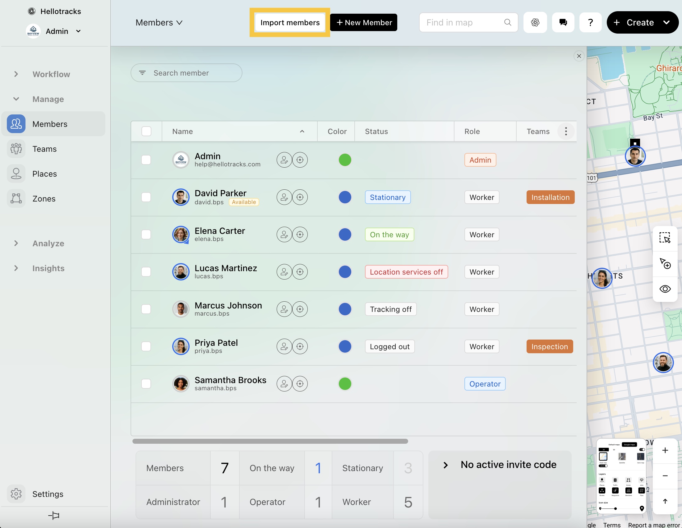 This guide shows Administrators how to import new members in bulk to their Hellotracks Business account.