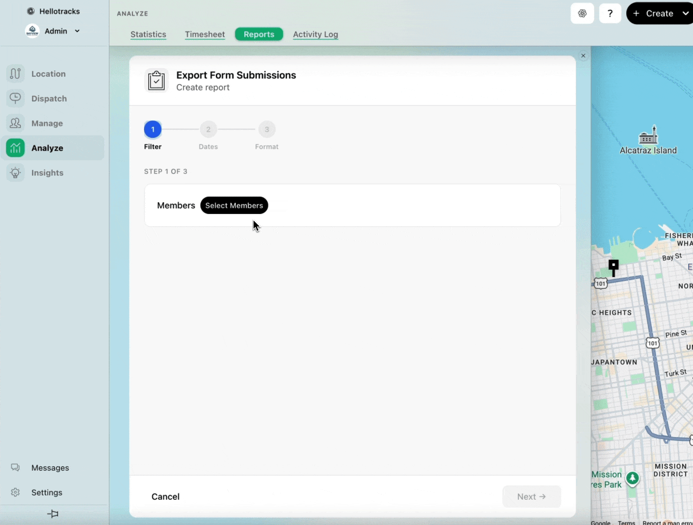 Step 4: Select the member(s) you want to include in the report and Accept, then click Next.