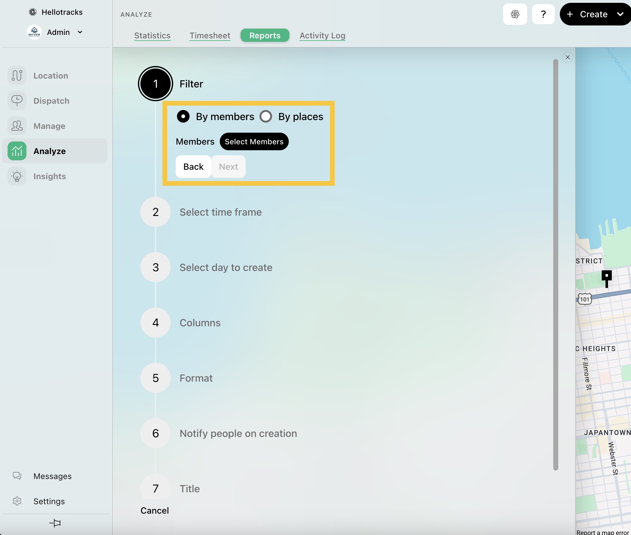 Step 5: Select the member(s) or Place(s) you want to include in the report, then click Accept and Next.