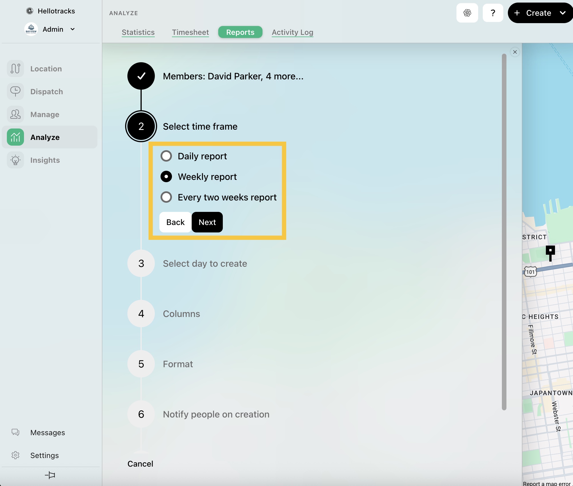 Step 6: Select the time frame (Daily, Weekly, or Every two weeks), then click Next.