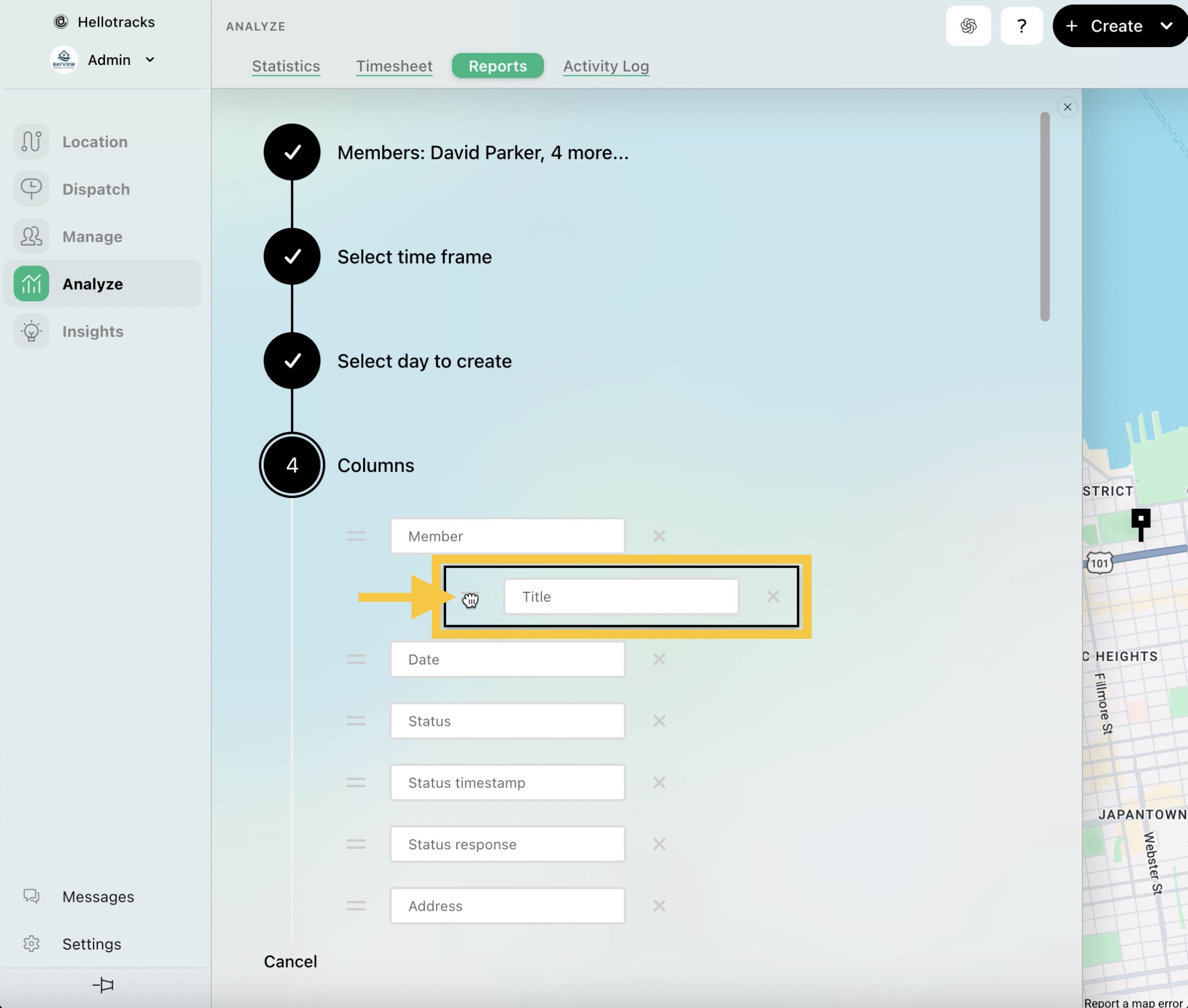 Step 8: Customize the columns by reordering, renaming, or removing them to define the data included in your report, then click Next.