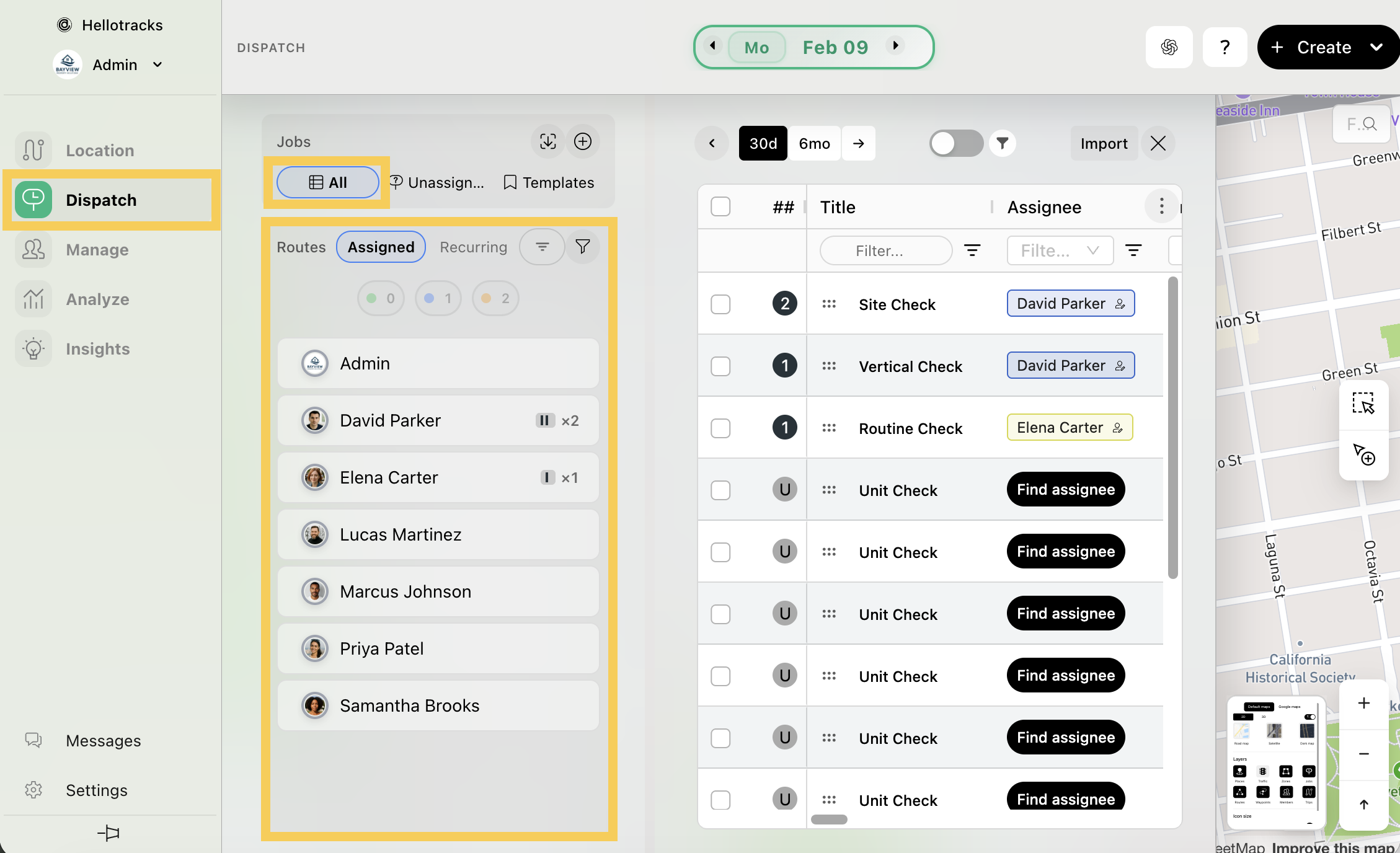Step 1: From the main menu, click Dispatch, then select All jobs or choose a specific team member to view their assigned Jobs.