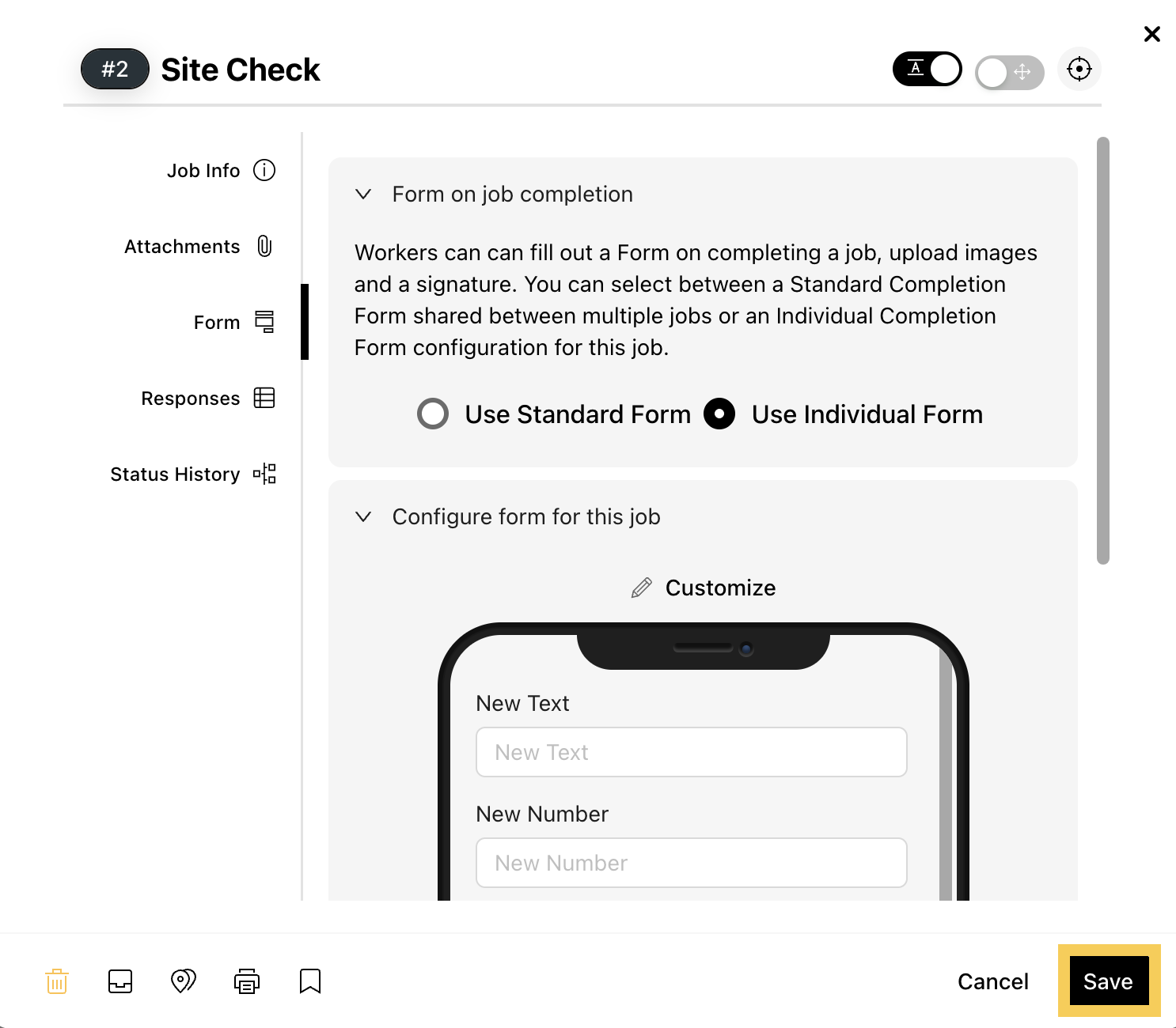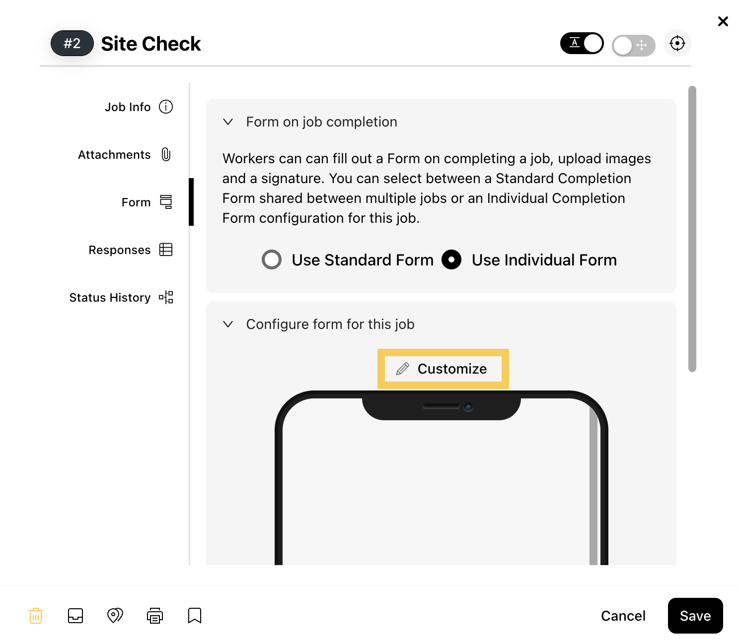 - Individual Form: Unique to a specific job, allowing you to customize data collection just for it. Changes to an Individual Form only affect that particular job.