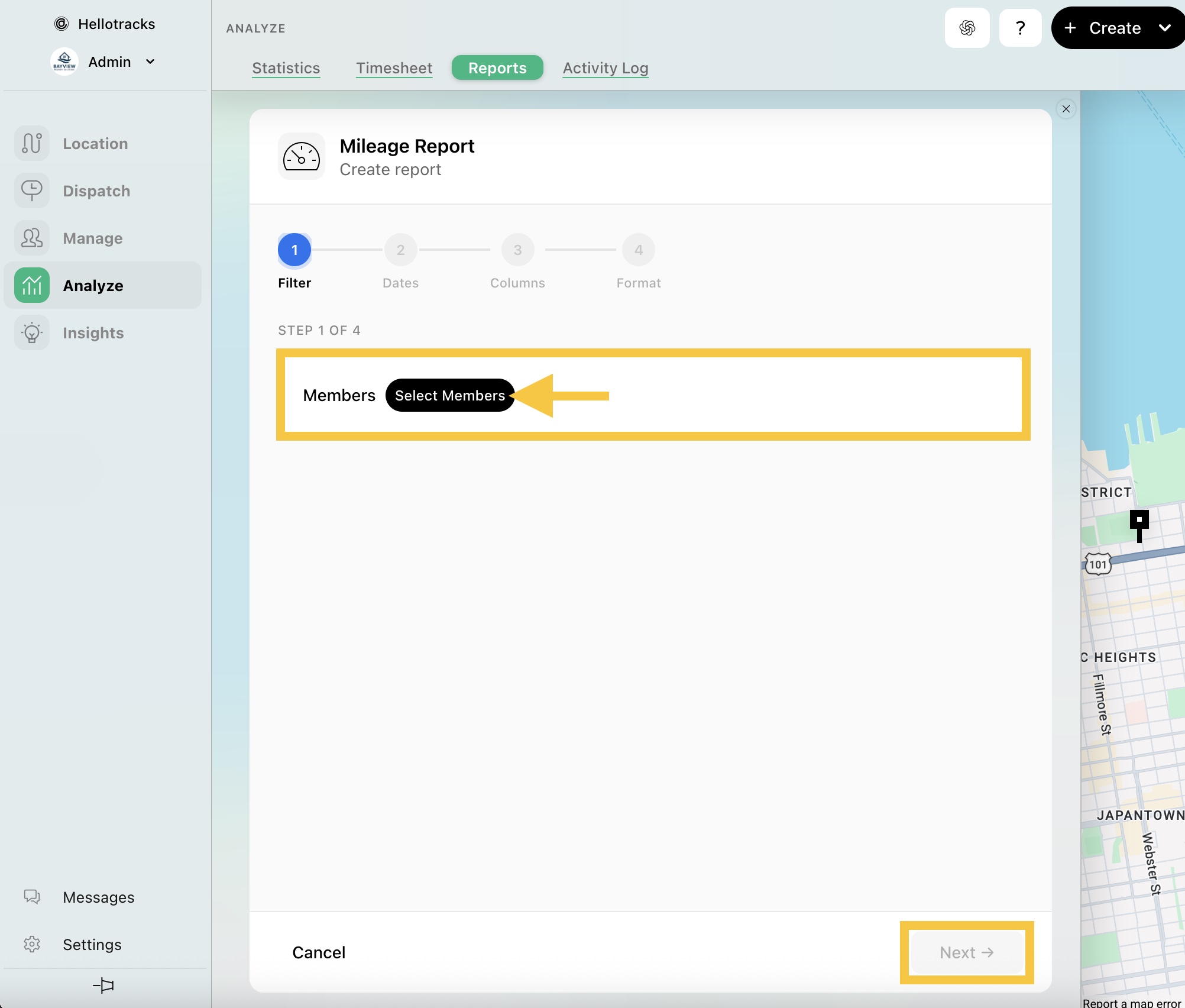Step 3: Choose Mileage Report as the report type, then click Start.