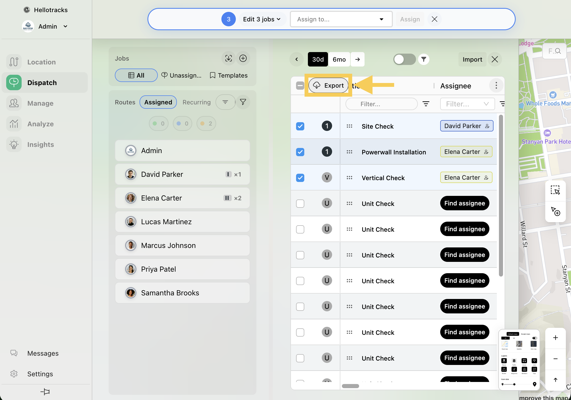 Step 2: Select the jobs you want to export by clicking the checkboxes next to them.