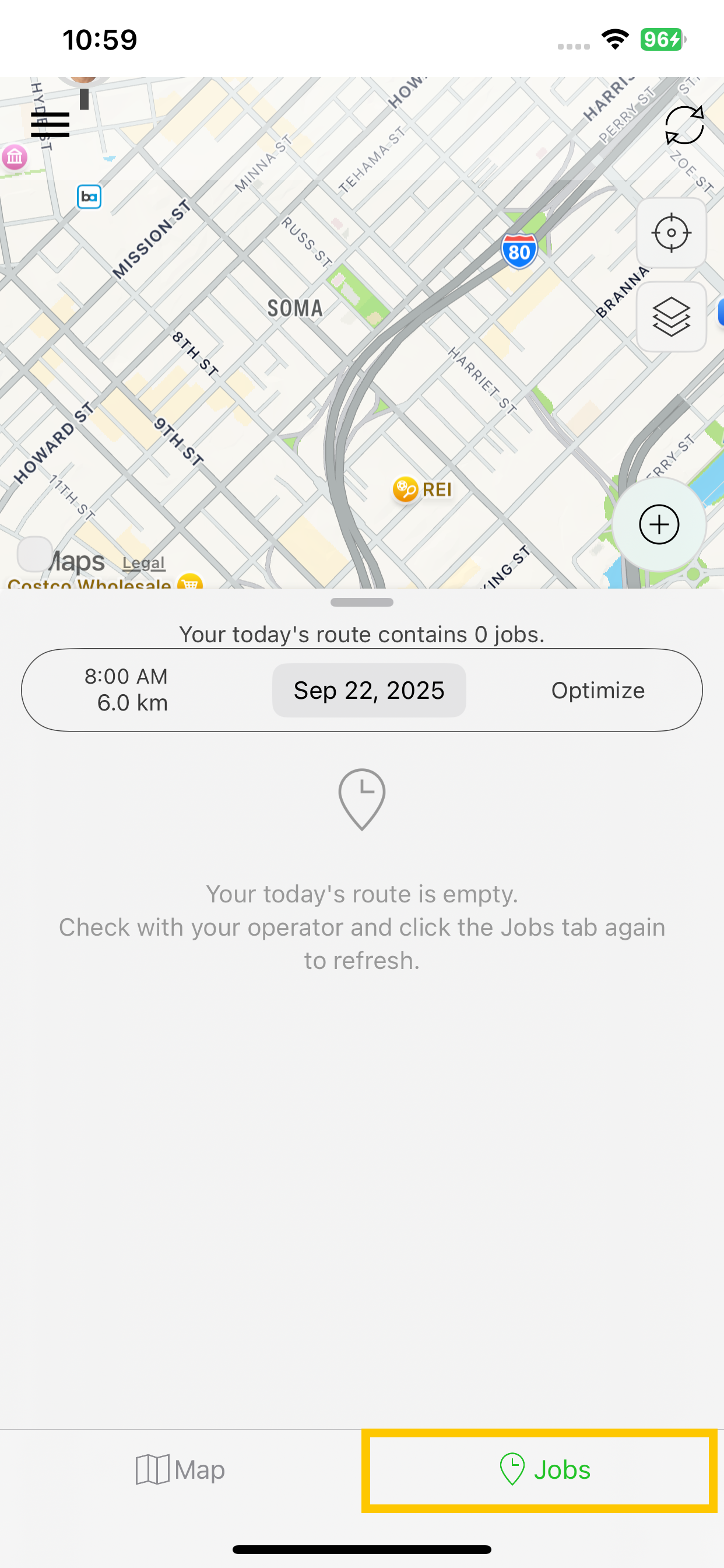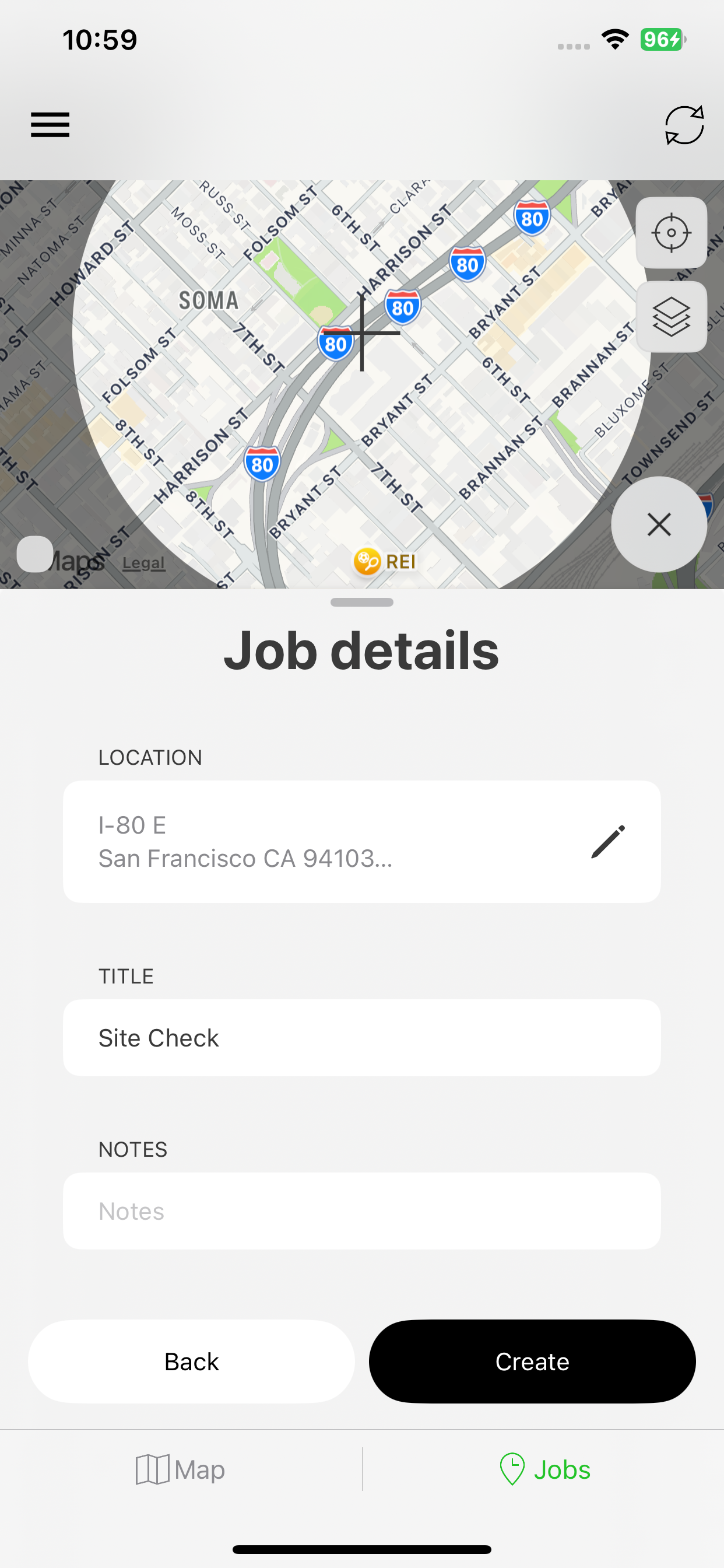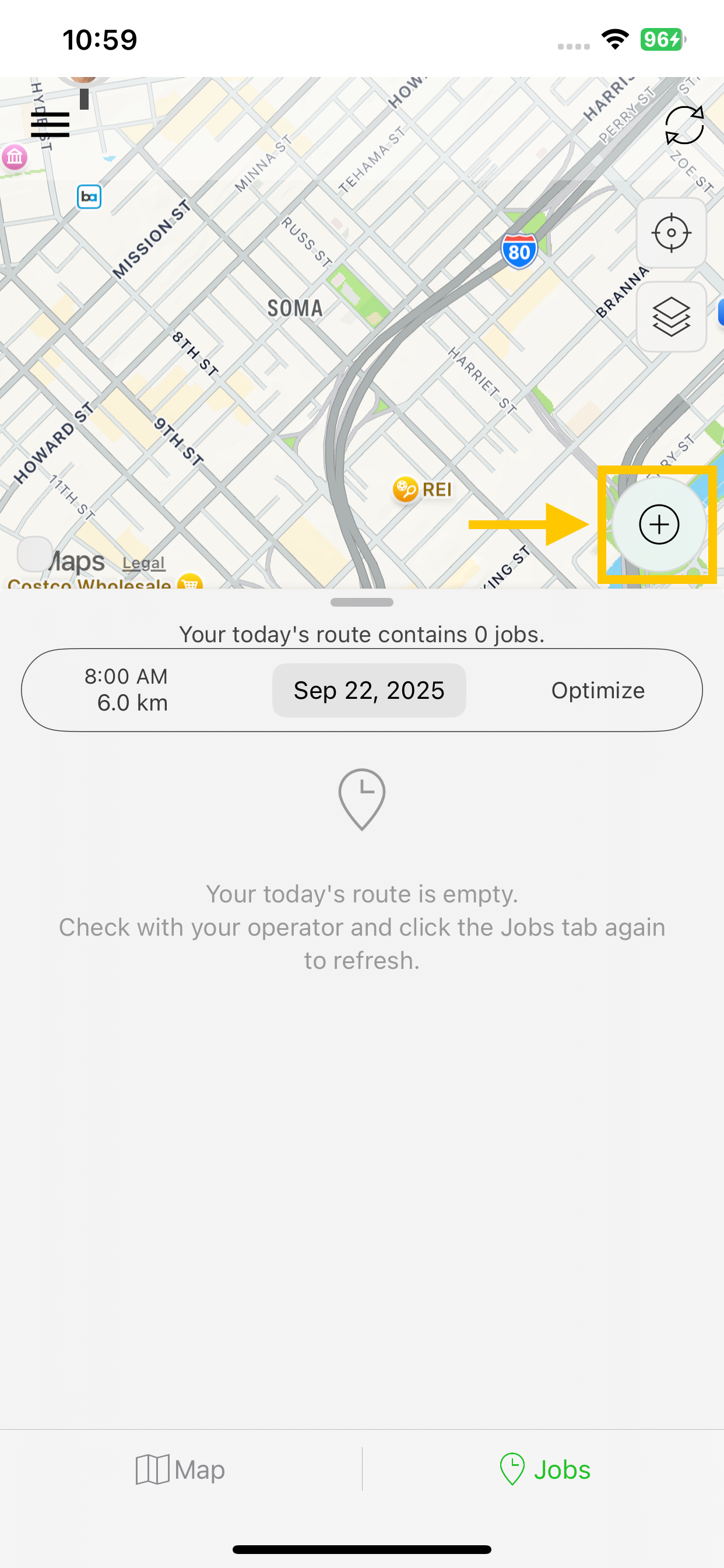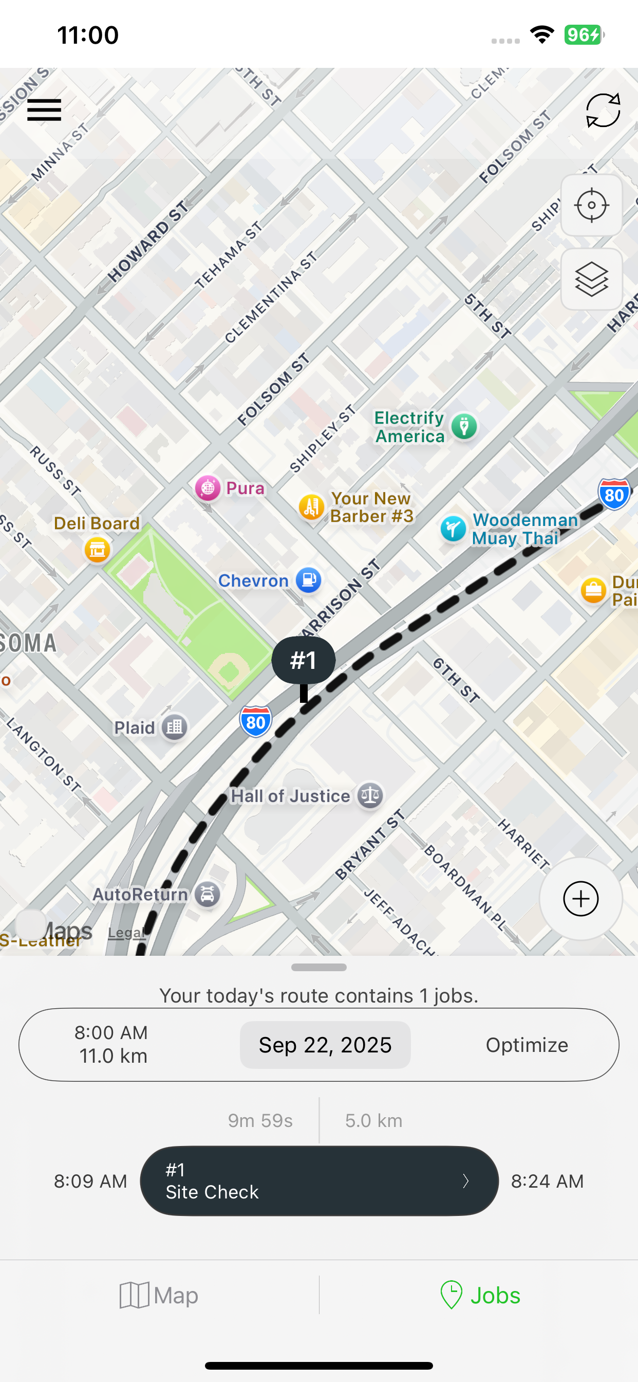 Step 6: Once created, the Job appears on the map and is added to your Jobs list for the day.
