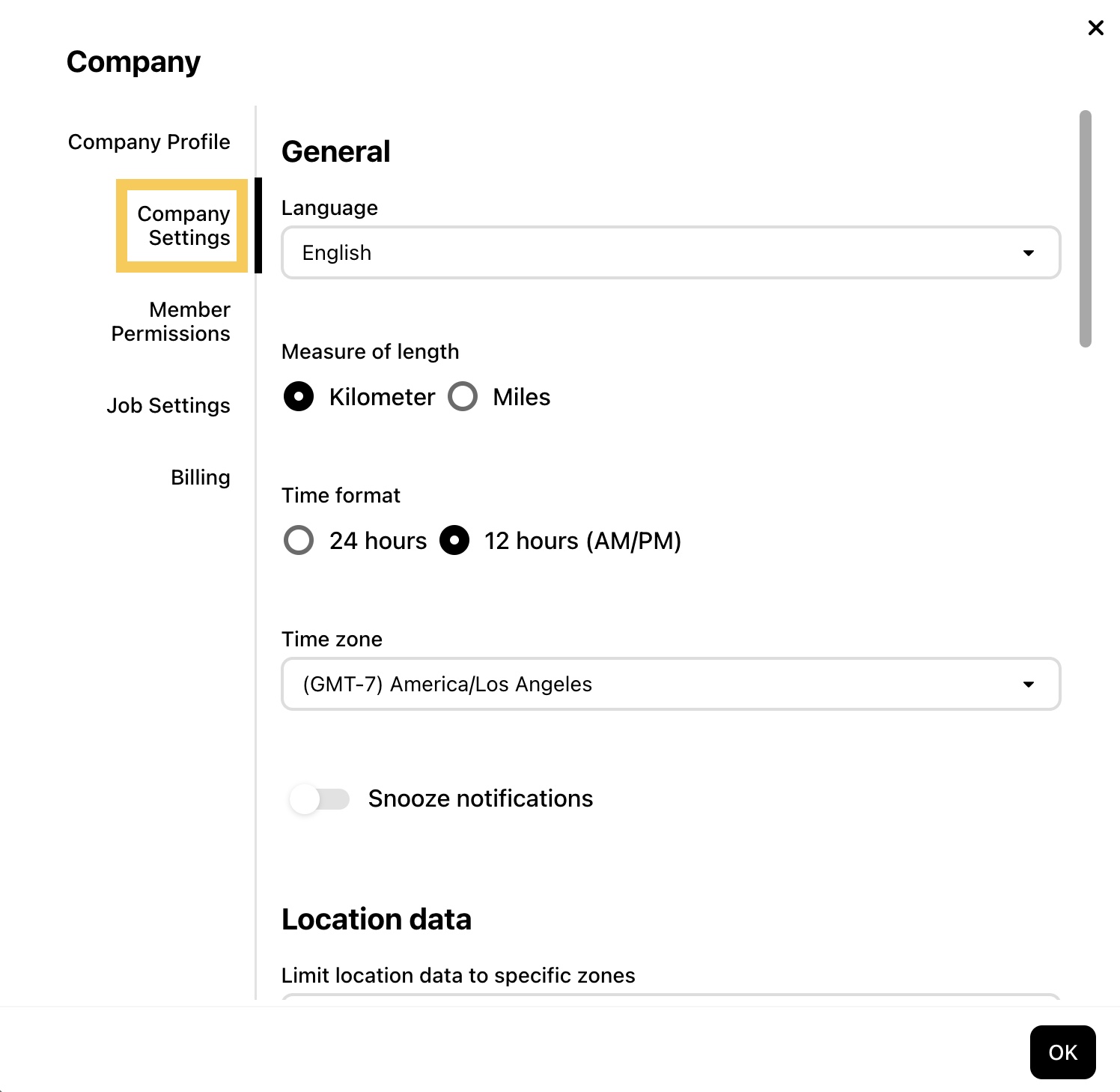 Step 1: Click the dropdown menu under your profile and select Company. Or, go to Settings at the bottom of the main menu and select Company Settings.