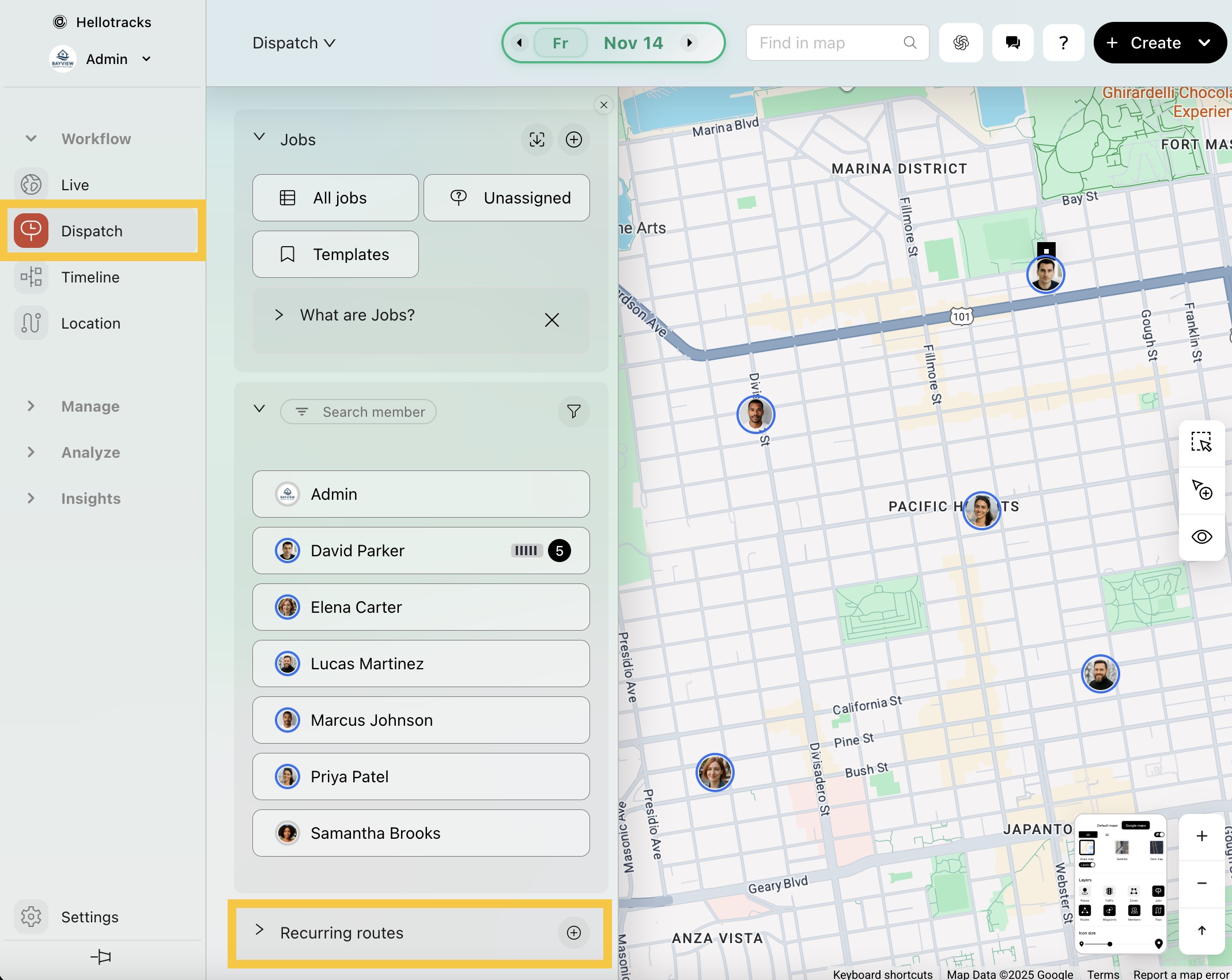 Step 1: Go to the Dispatch menu and select Recurring routes.