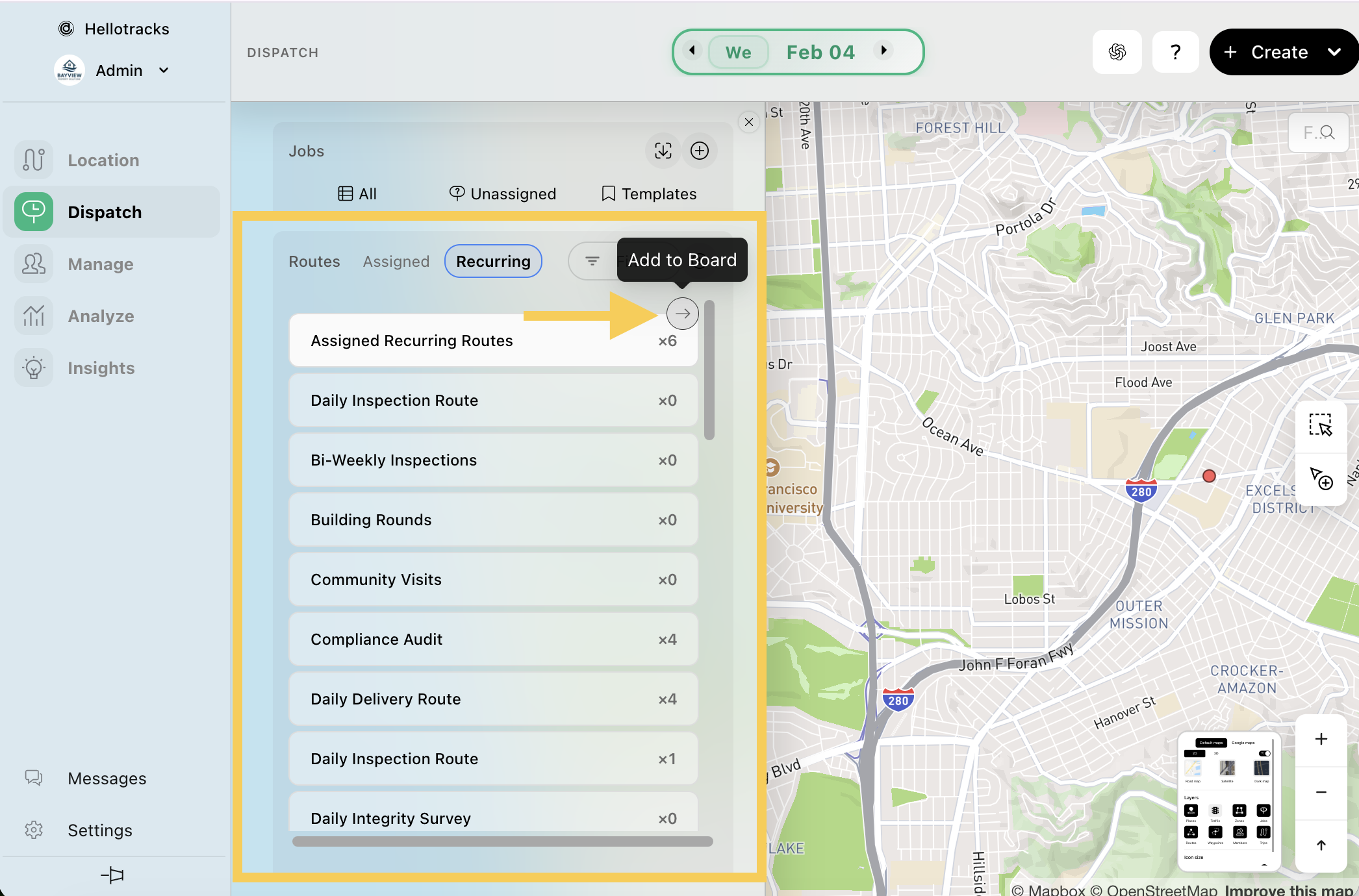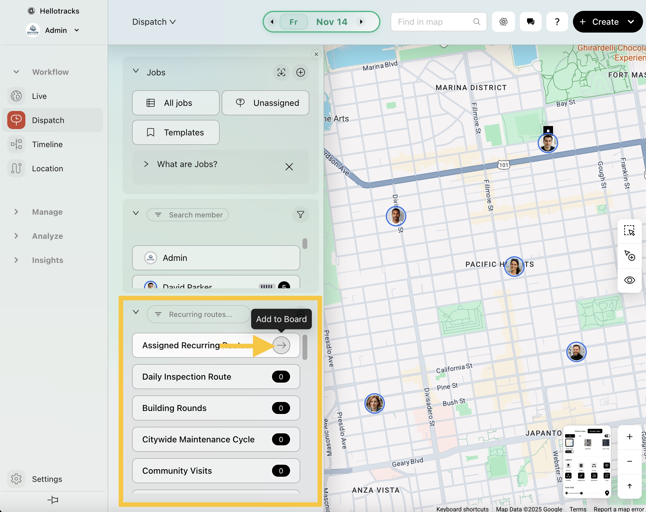Step 2: Choose the recurring route you want to schedule to a member, then click Add to Board. To learn how to create a recurring route, click here.