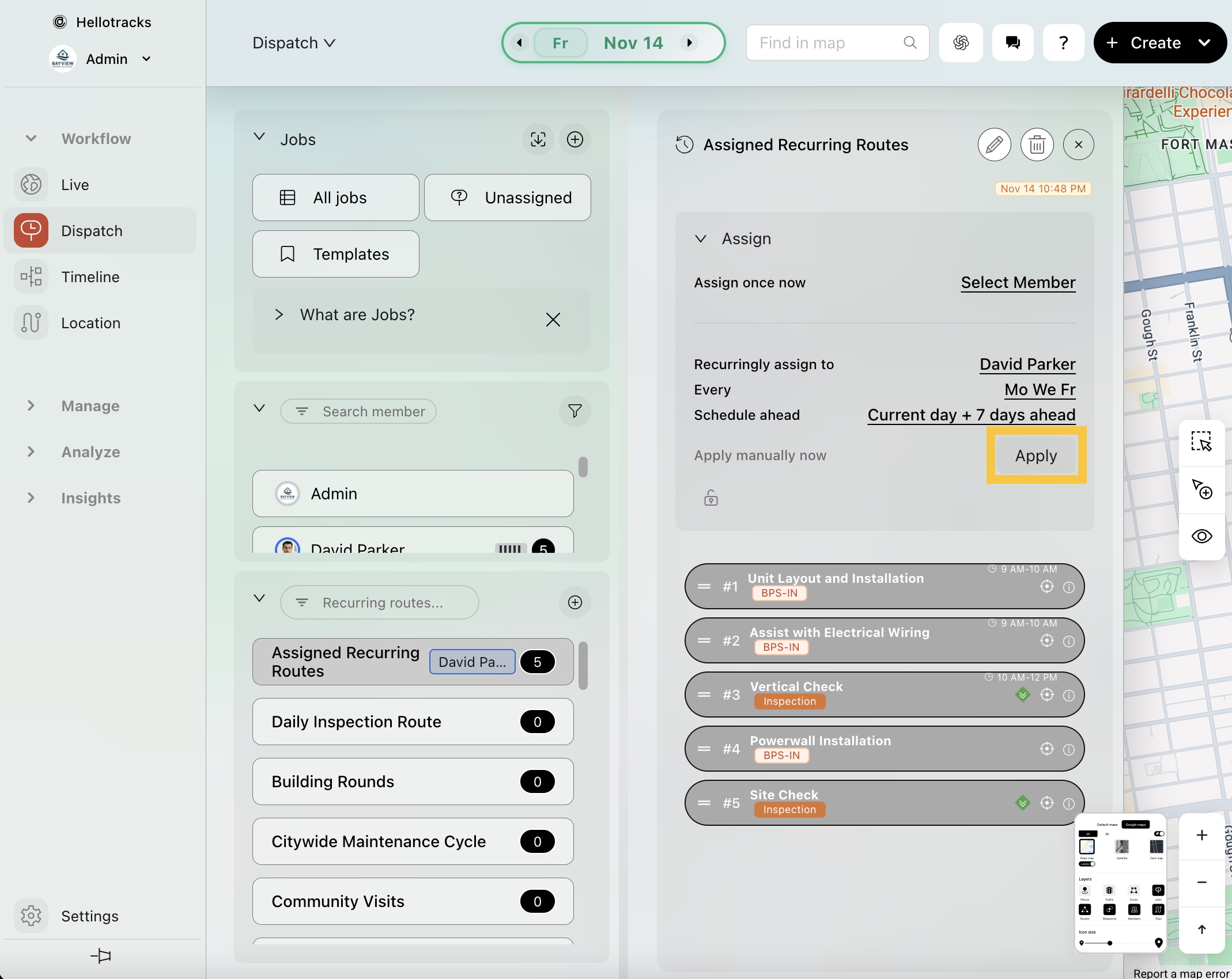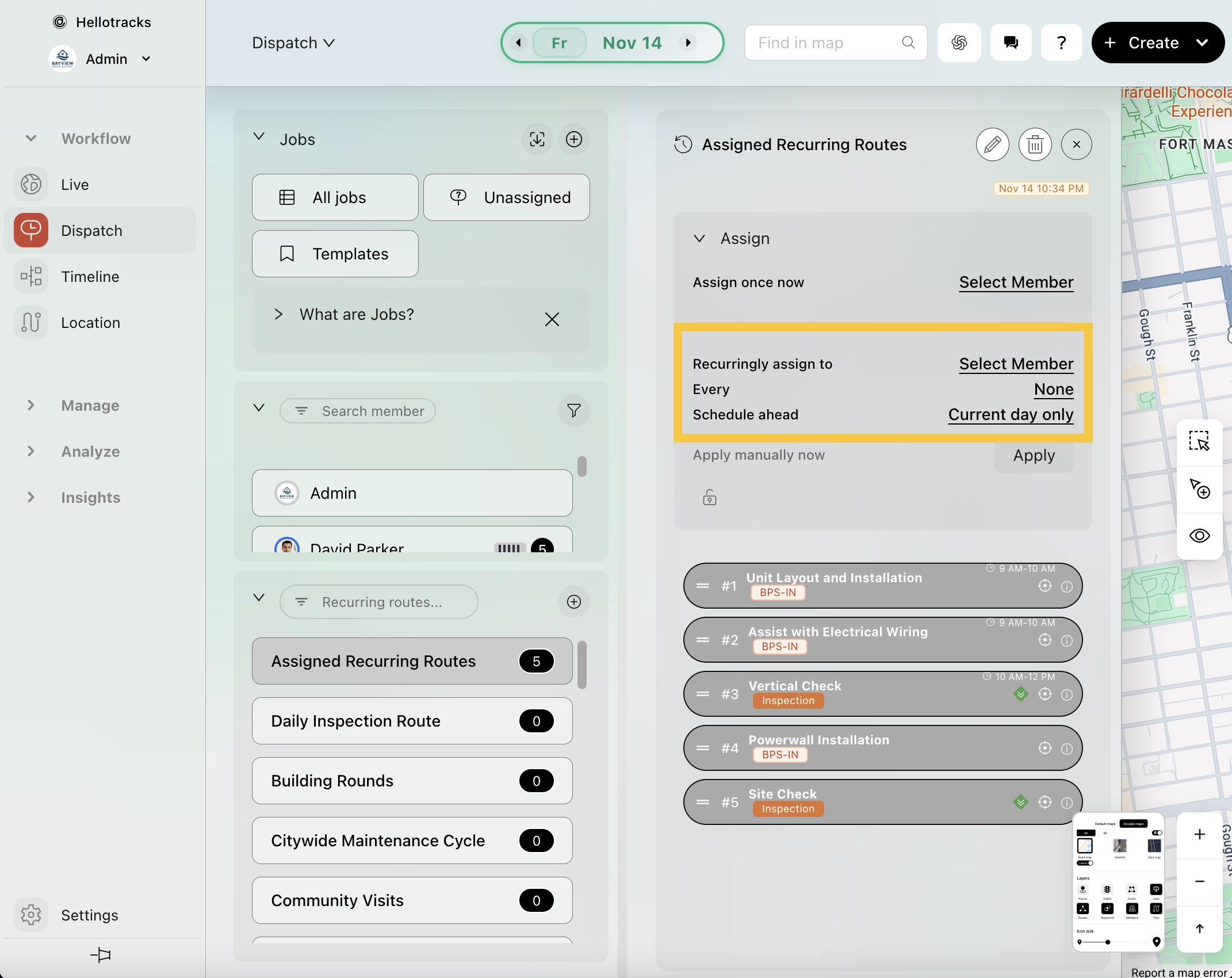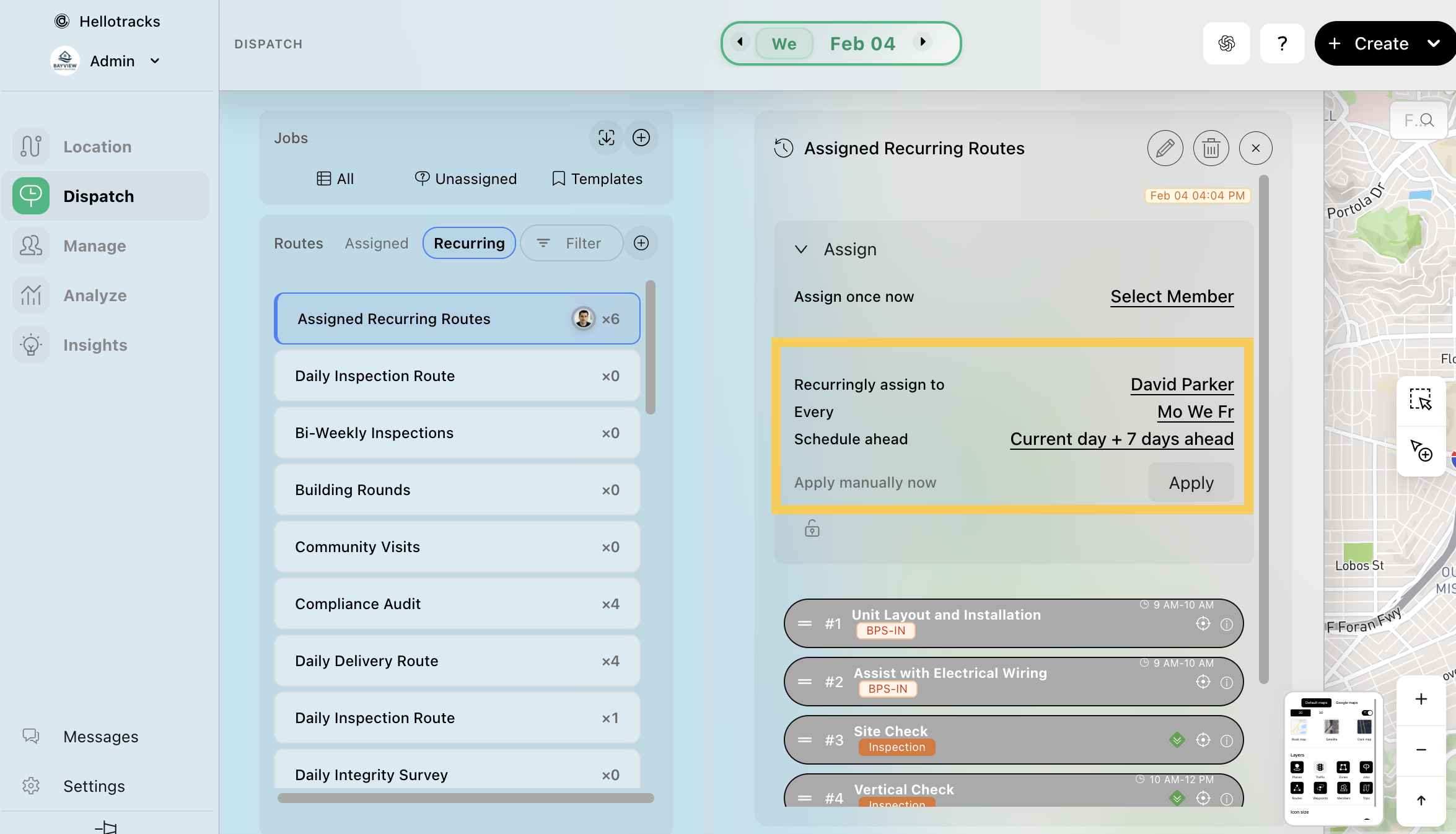 Jobs in this recurring route are created automatically for the assigned member based on the schedule you set.