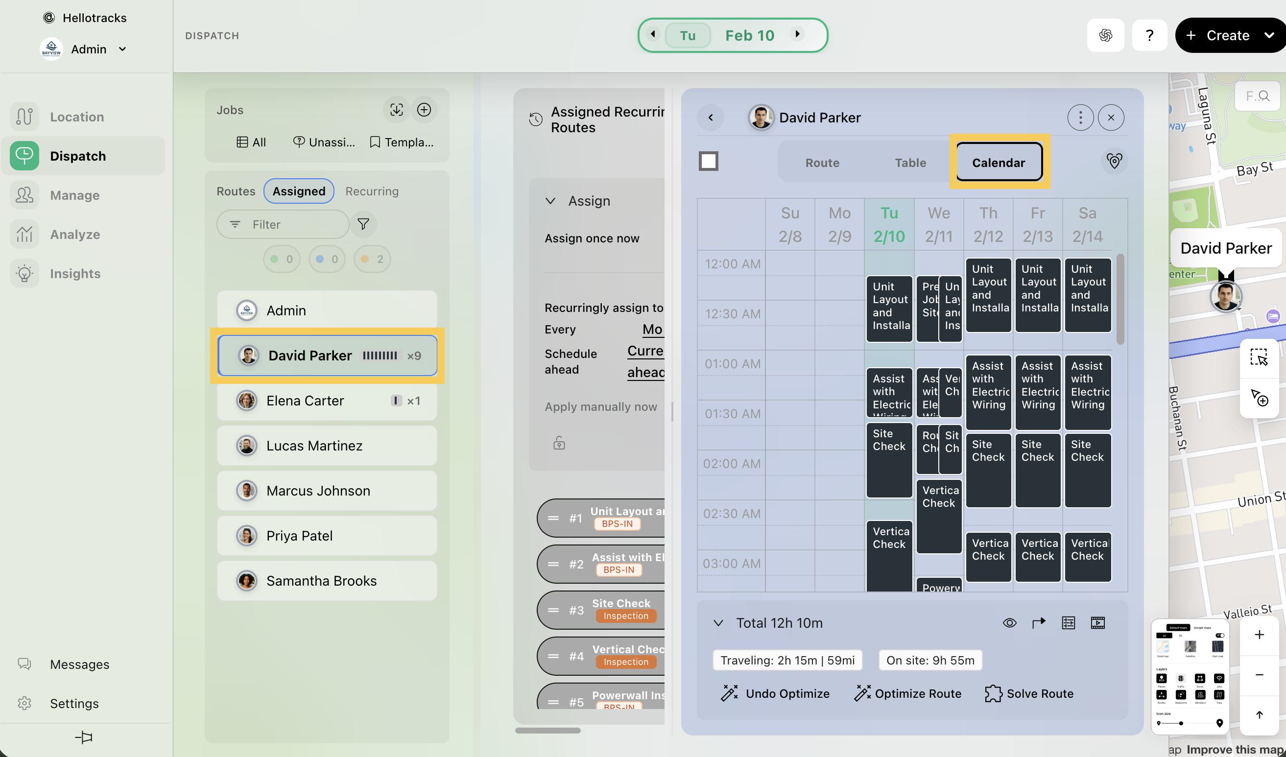 Step 5: Go to the assigned member’s board and select Calendar to see the generated Jobs for this recurring route laid out in the weekly view.
