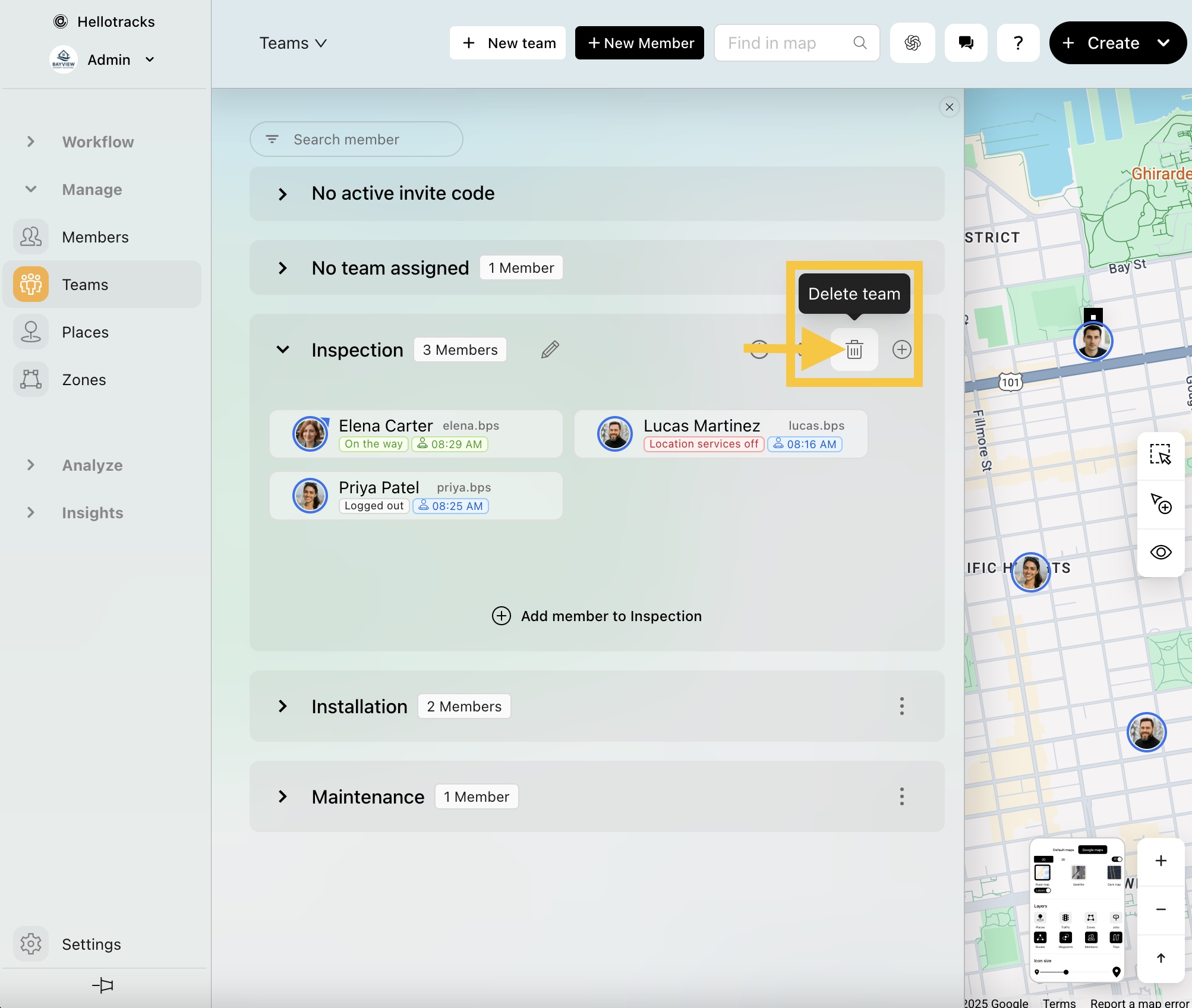 Step 1: Go to Teams from the Manage section of the main menu.