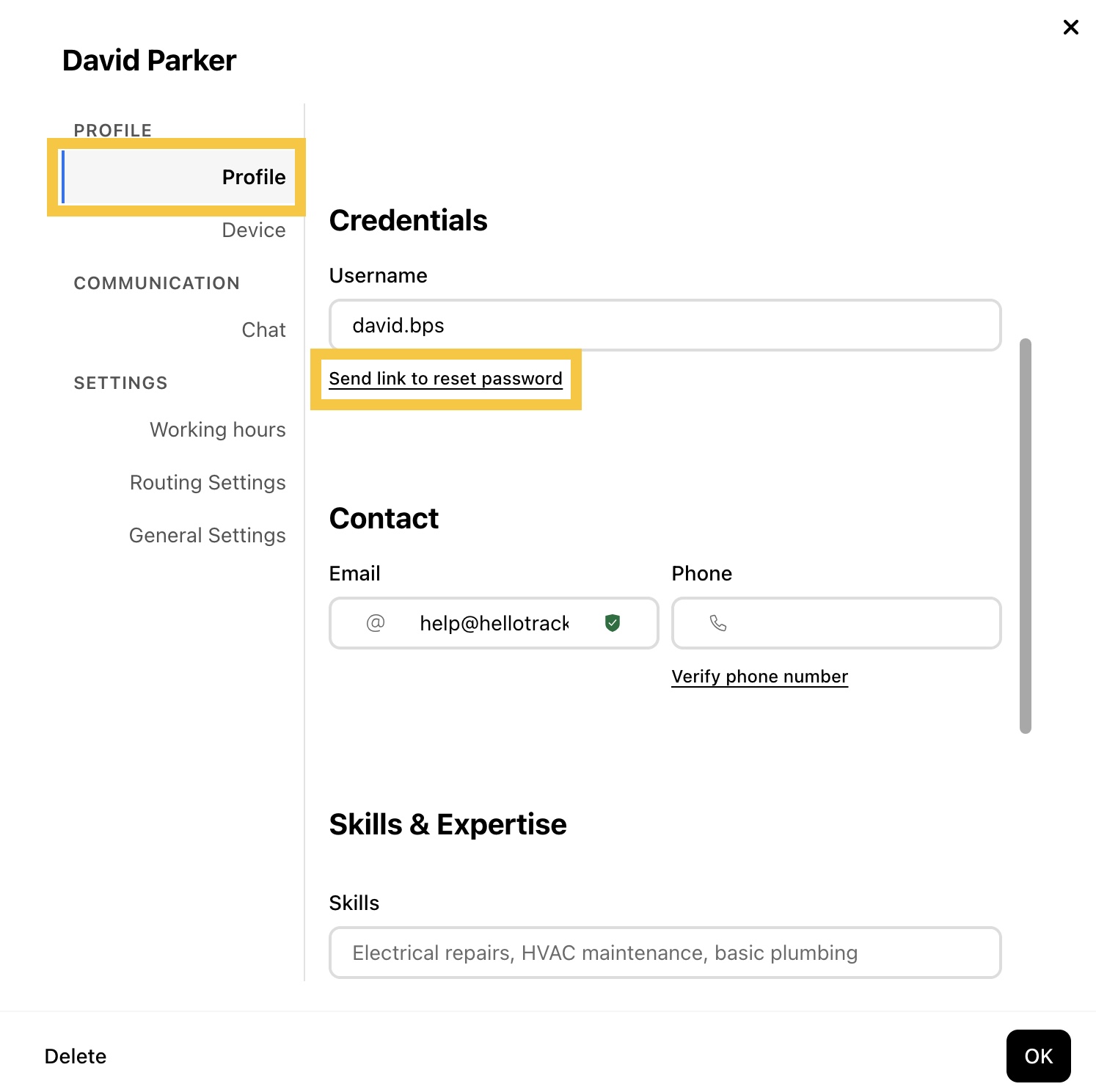 Note: The password reset link will be sent to the member’s contact email address saved in their profile.