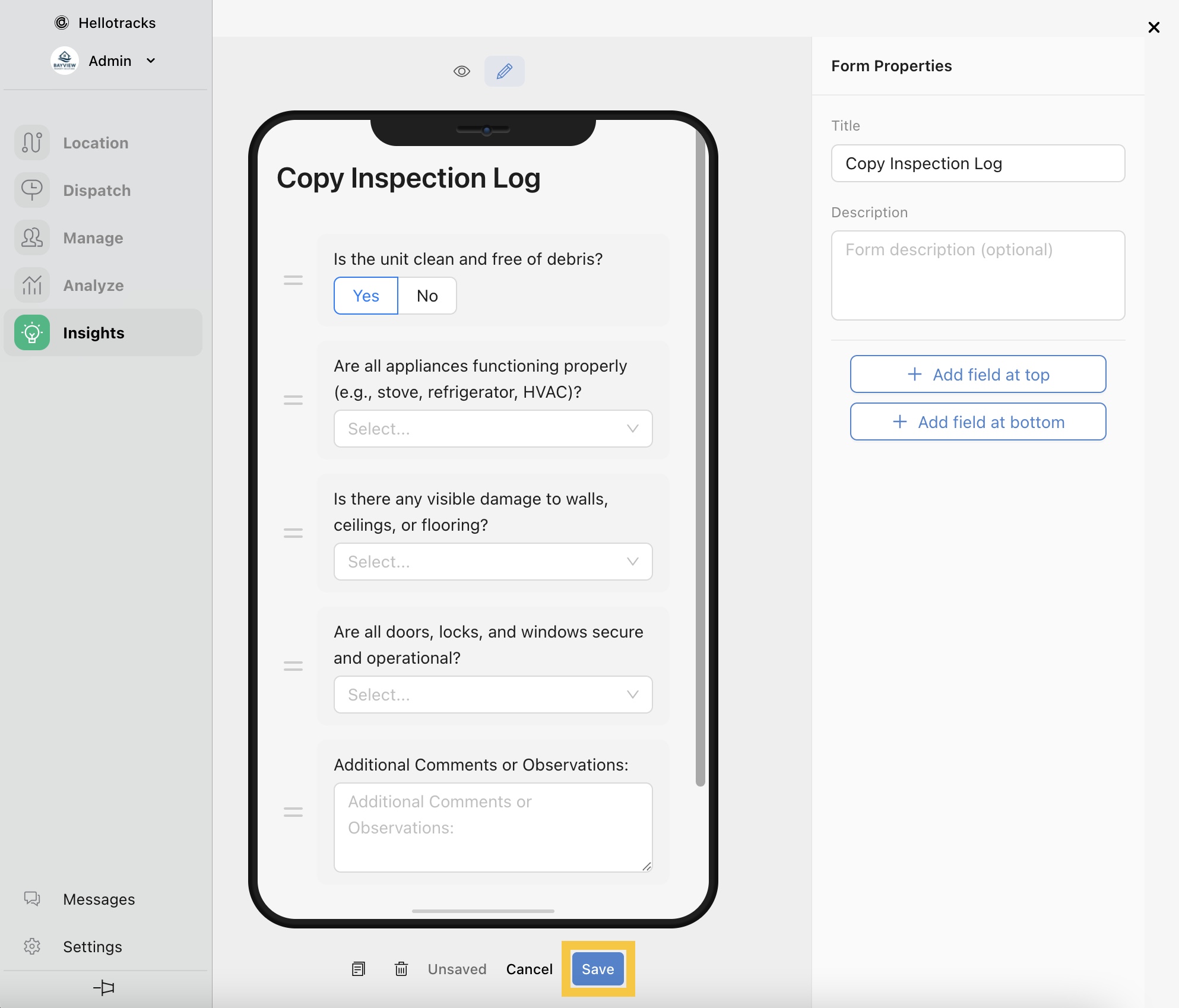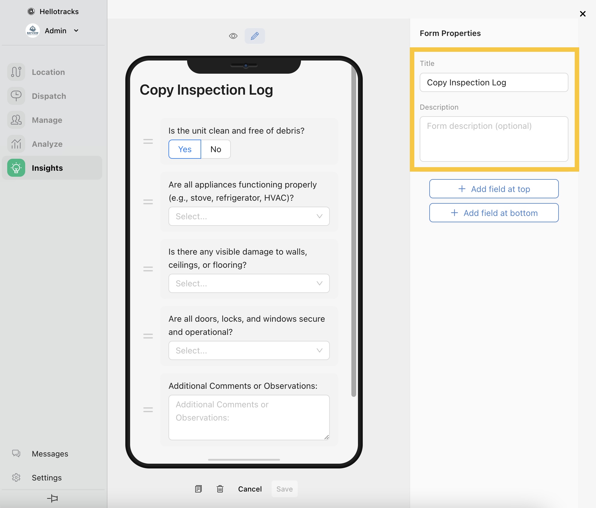 Step 4: The duplicated Form is created with a “Copy” title (e.g., Copy Inspection Log). Update the Form Title and Description as needed.