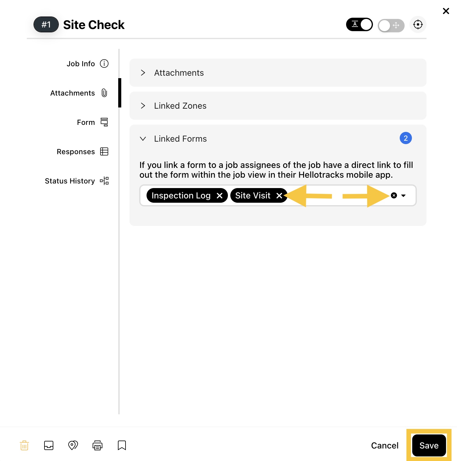 Step 2: In Linked Forms, click the X next to a Form to remove it, or click the small x to remove all Forms, then click Save.