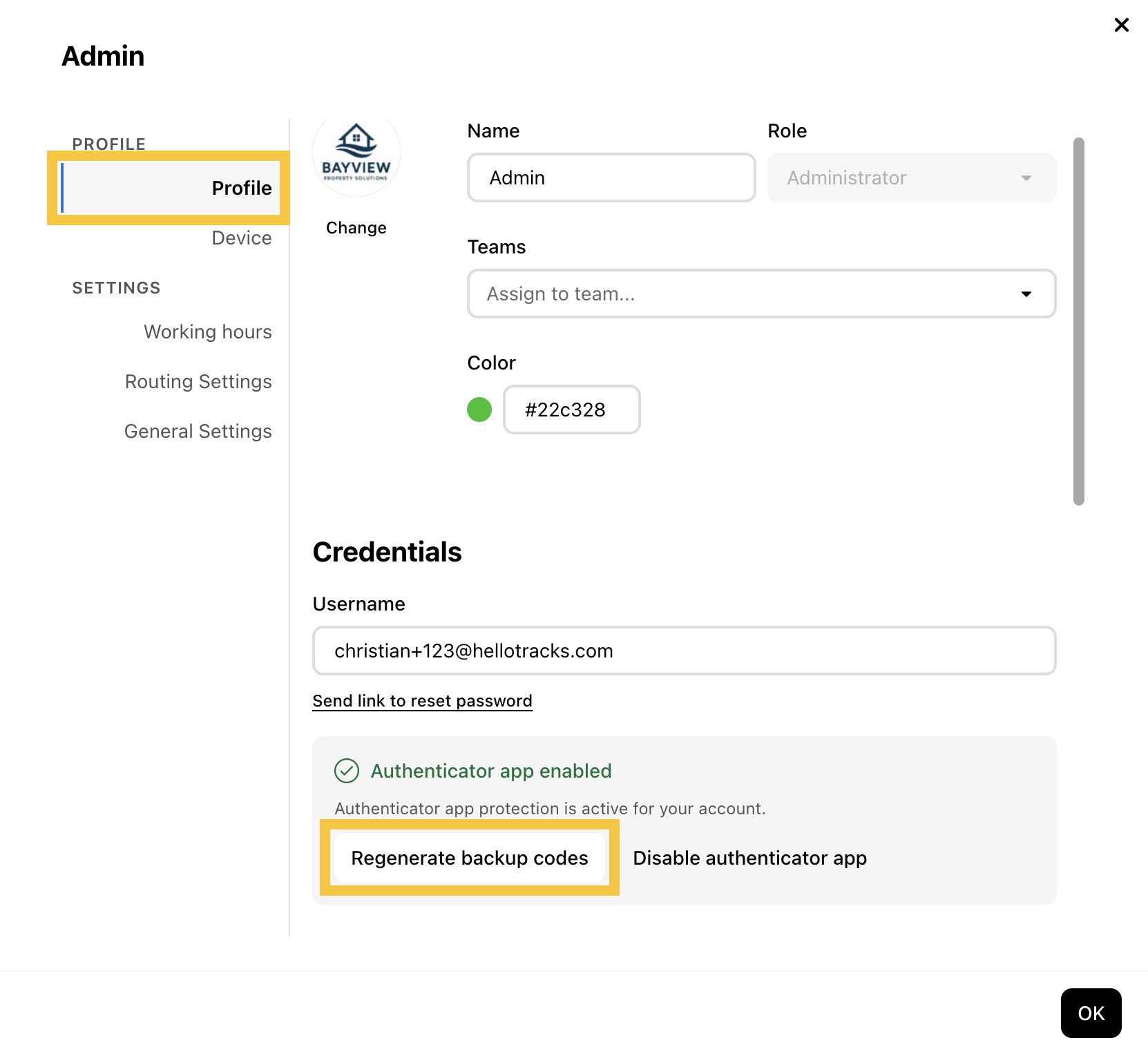 Step 2: In Profile, click Regenerate backup codes.