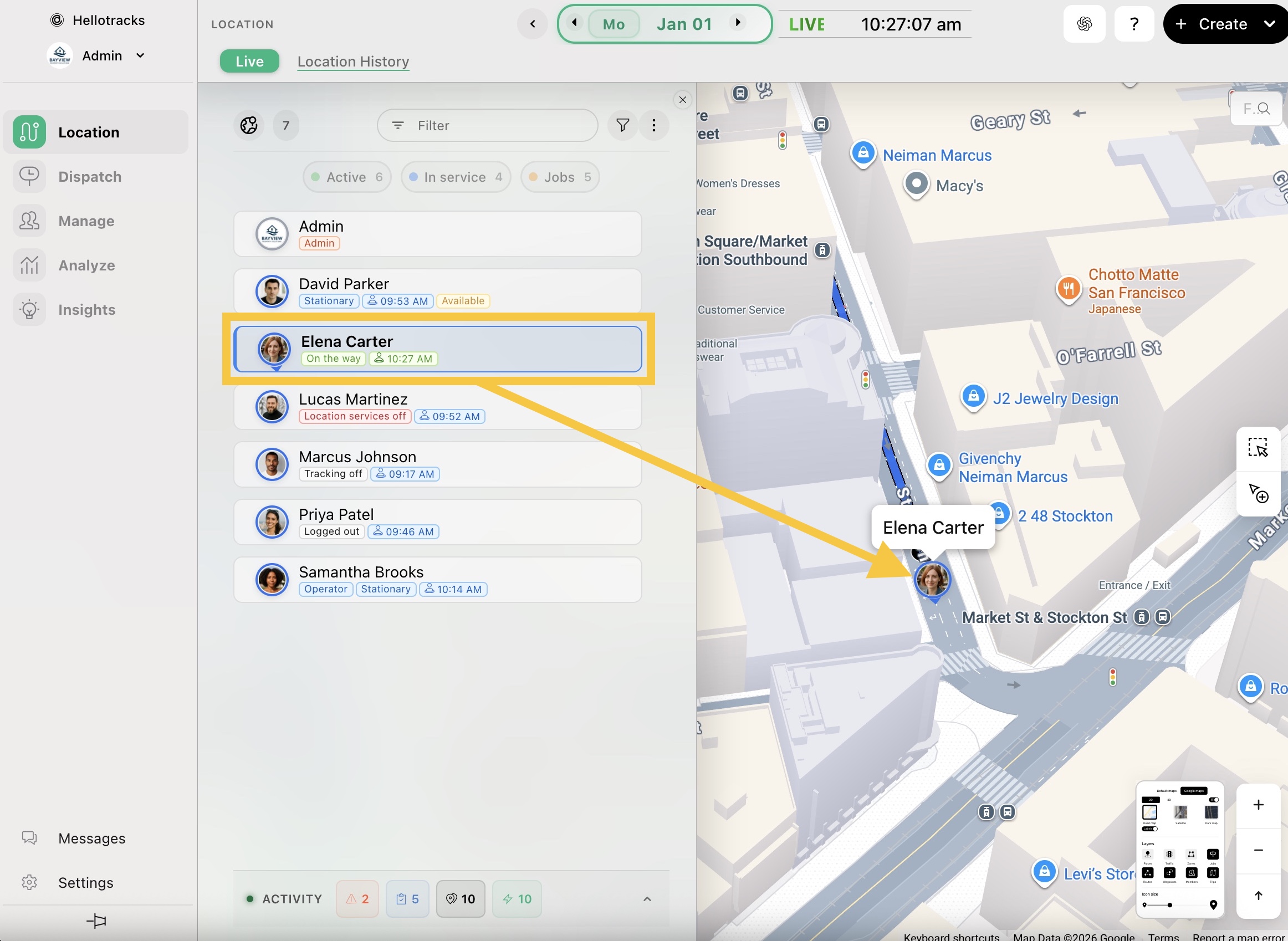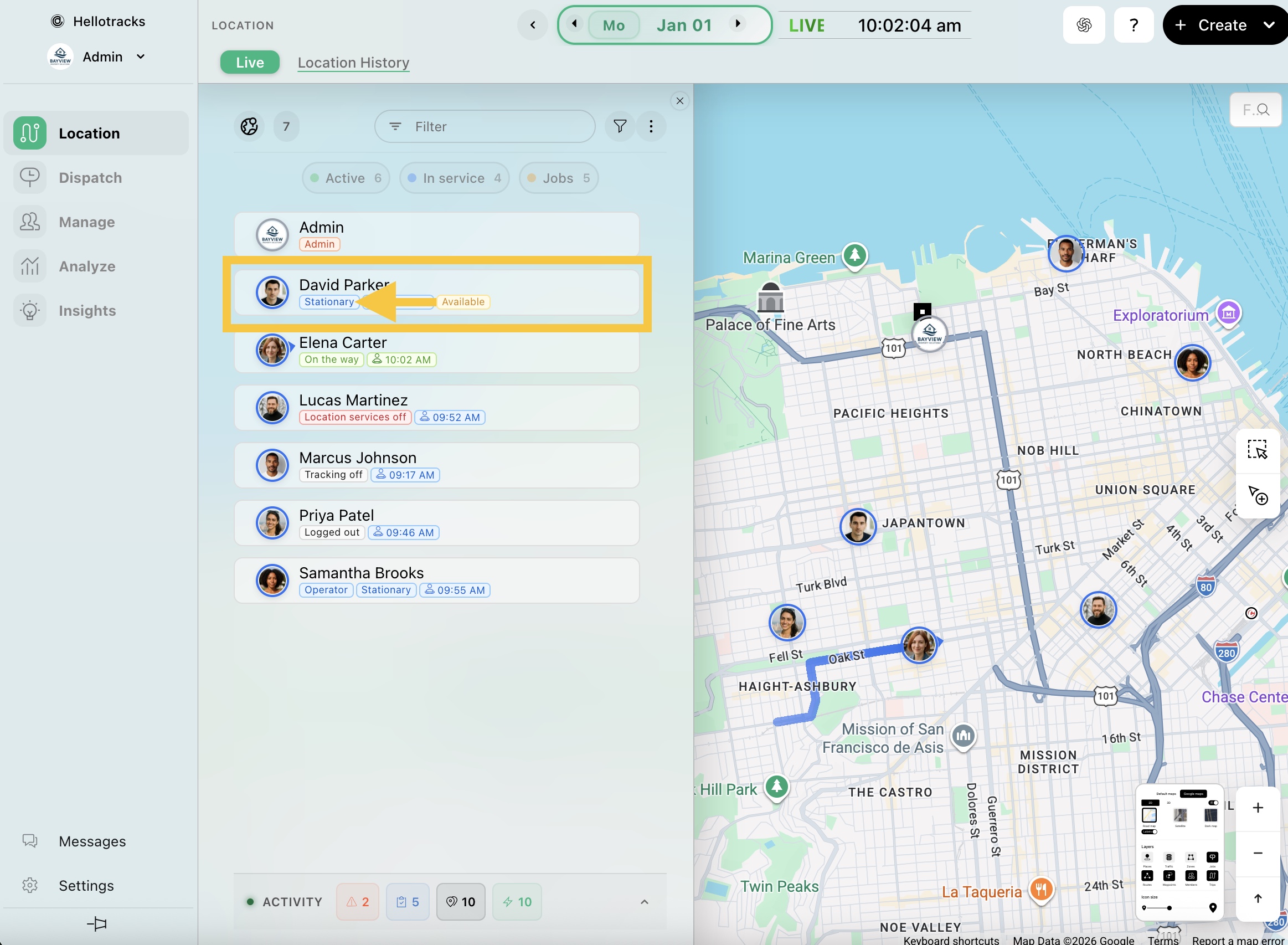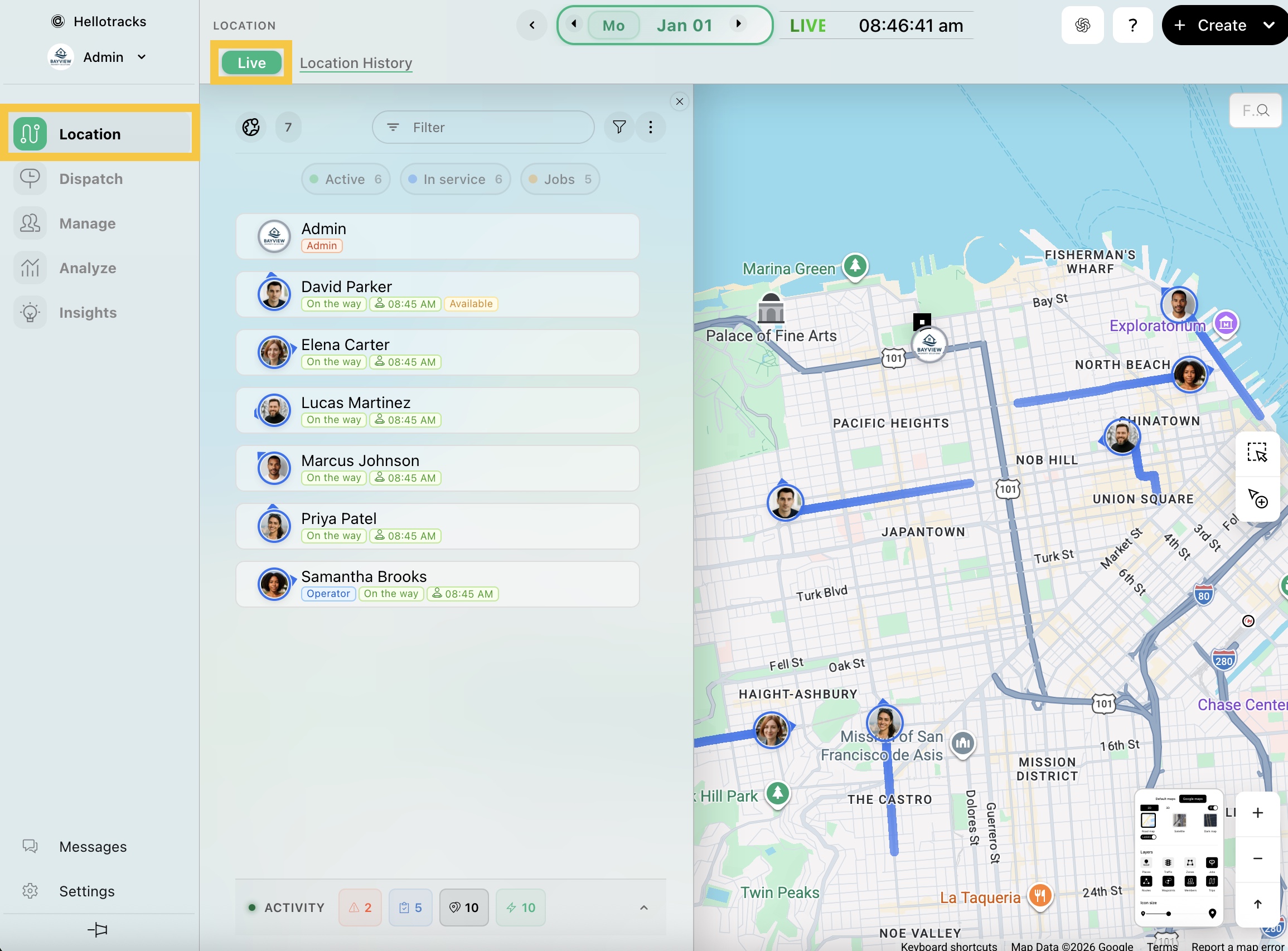 This guide explains how to use Live to see your team’s location and current status in real time.