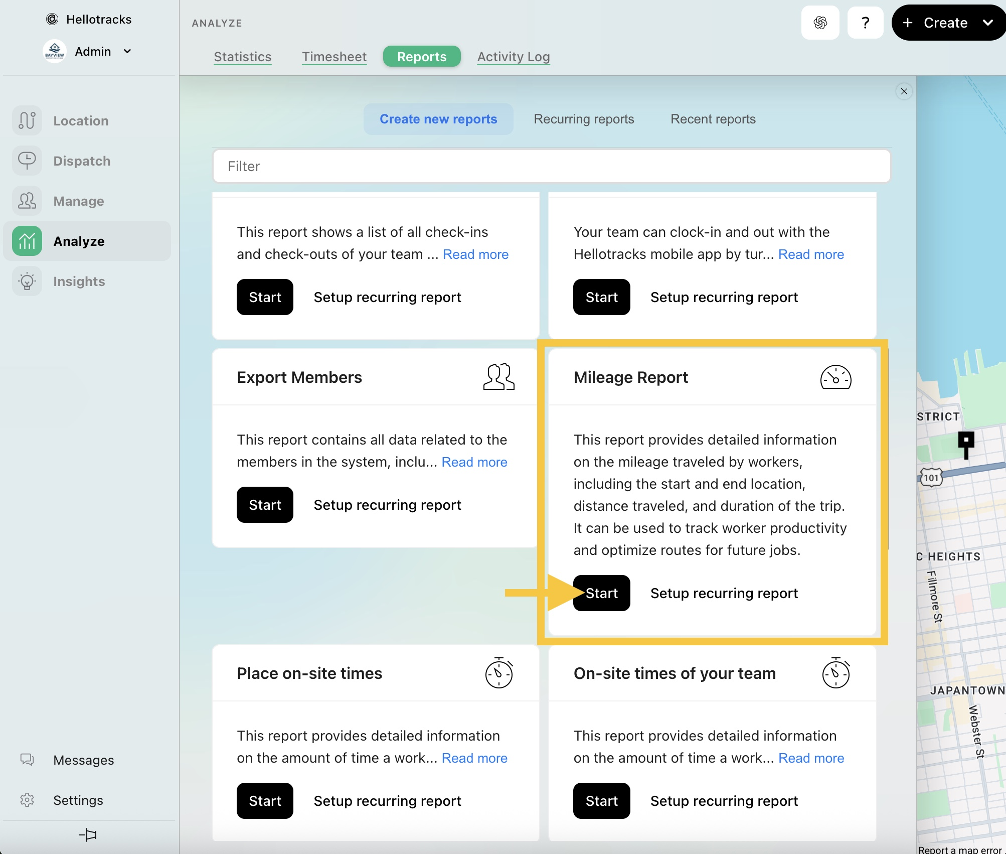 After reviewing Location History, you can create visit reports to keep records of visits, time spent at locations, and completed work.