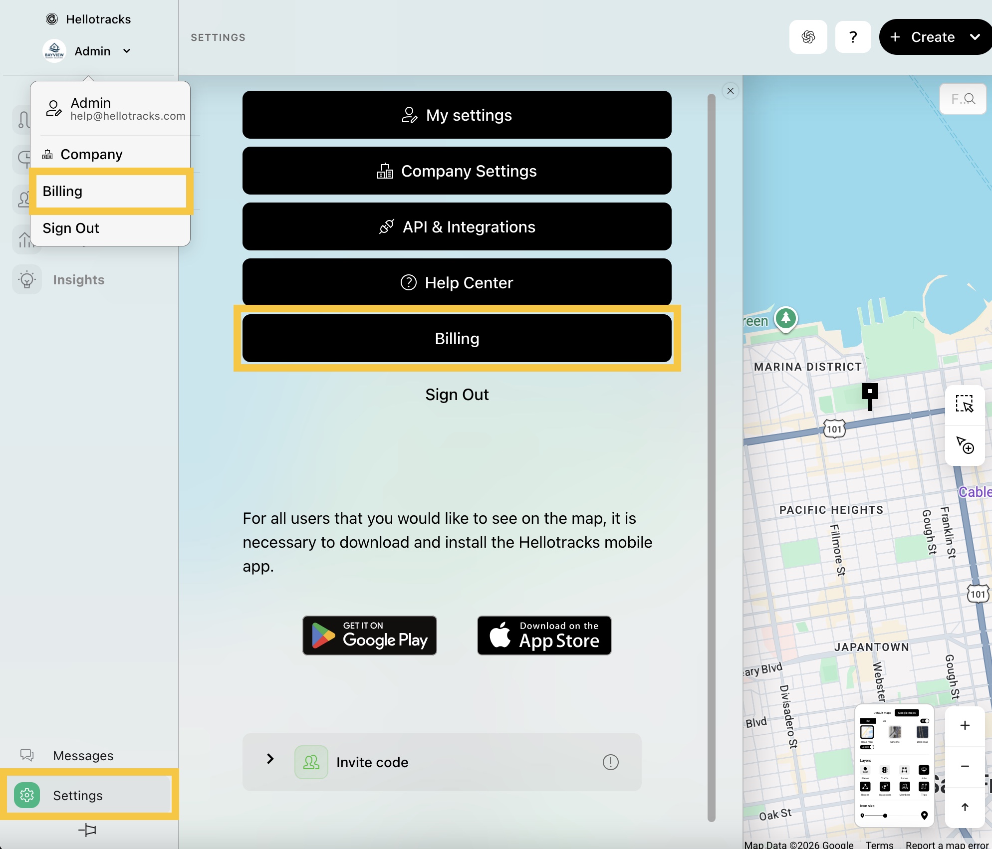 Step 1: Click the dropdown menu next your profile and select Billing. Or, go to Settings at the bottom of the main menu and select Billing.