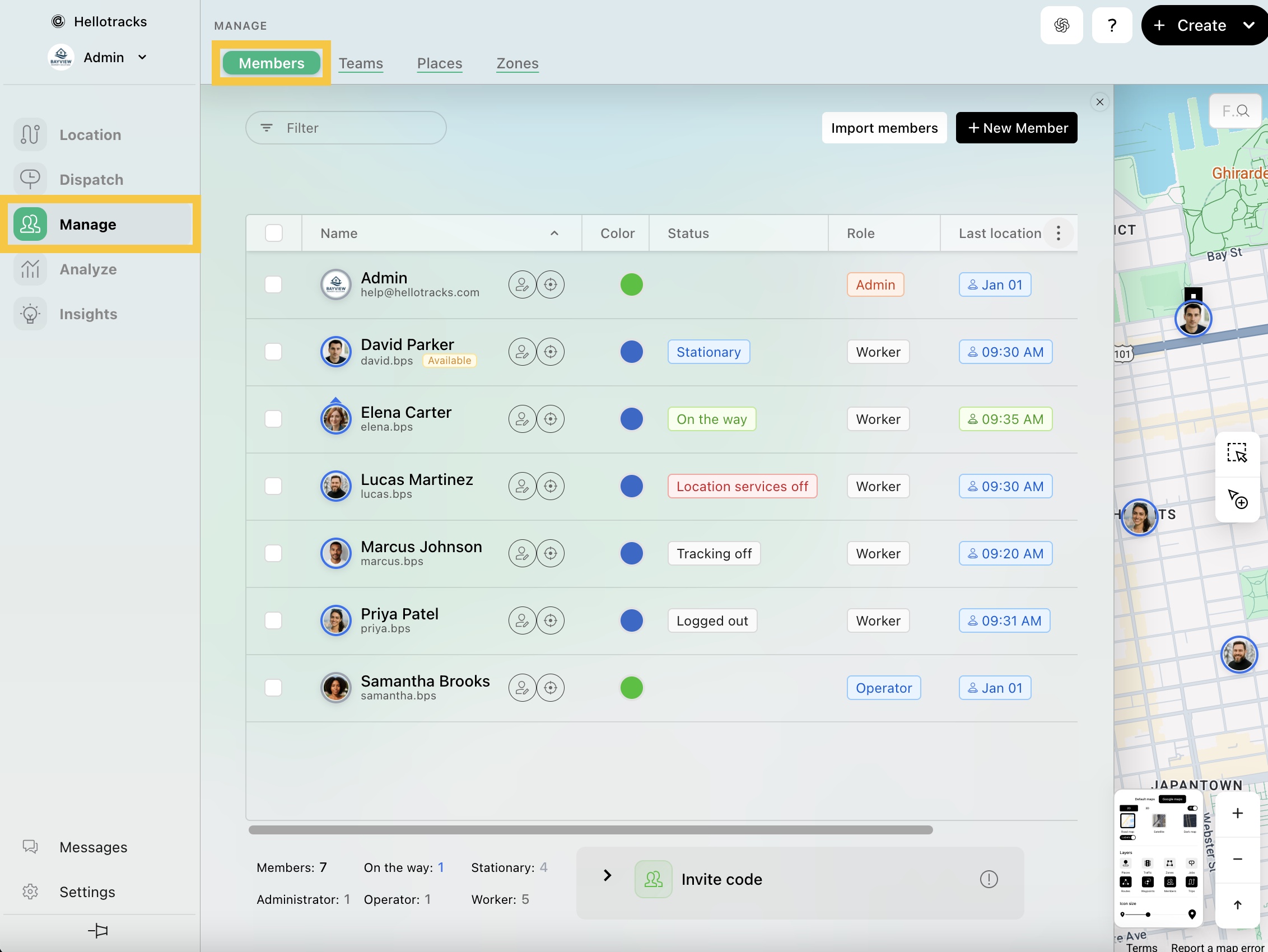 Step 2: From here, you can check the status, last location, and the version of the Hellotracks mobile app installed on their device.
