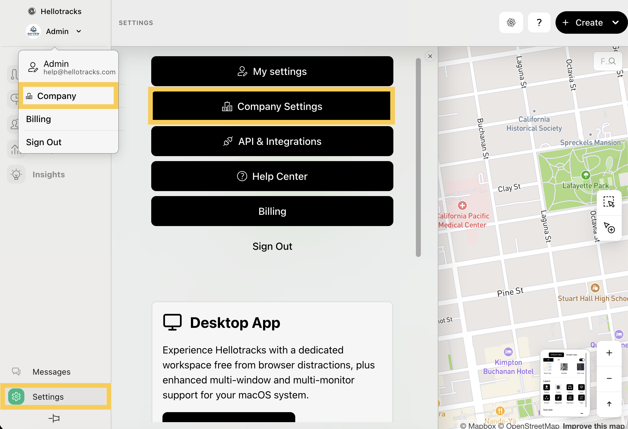 Step 1: Click the dropdown menu under your profile and select Company. Or, go to Settings at the bottom of the main menu and select Company Settings.