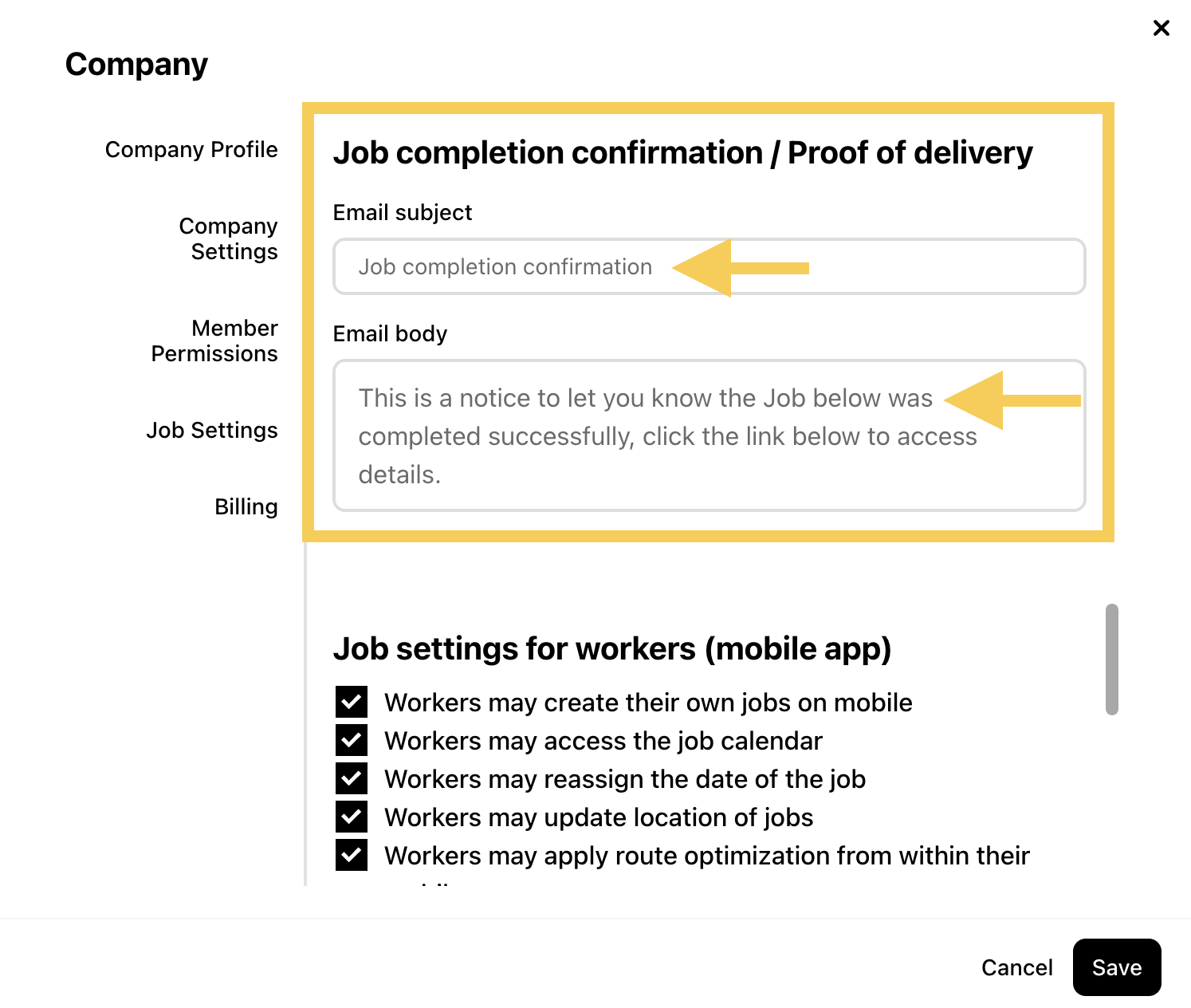 This guide explains how to configure automated proof of job completion and delivery notifications for your clients, ensuring transparent communication and verified service delivery.
