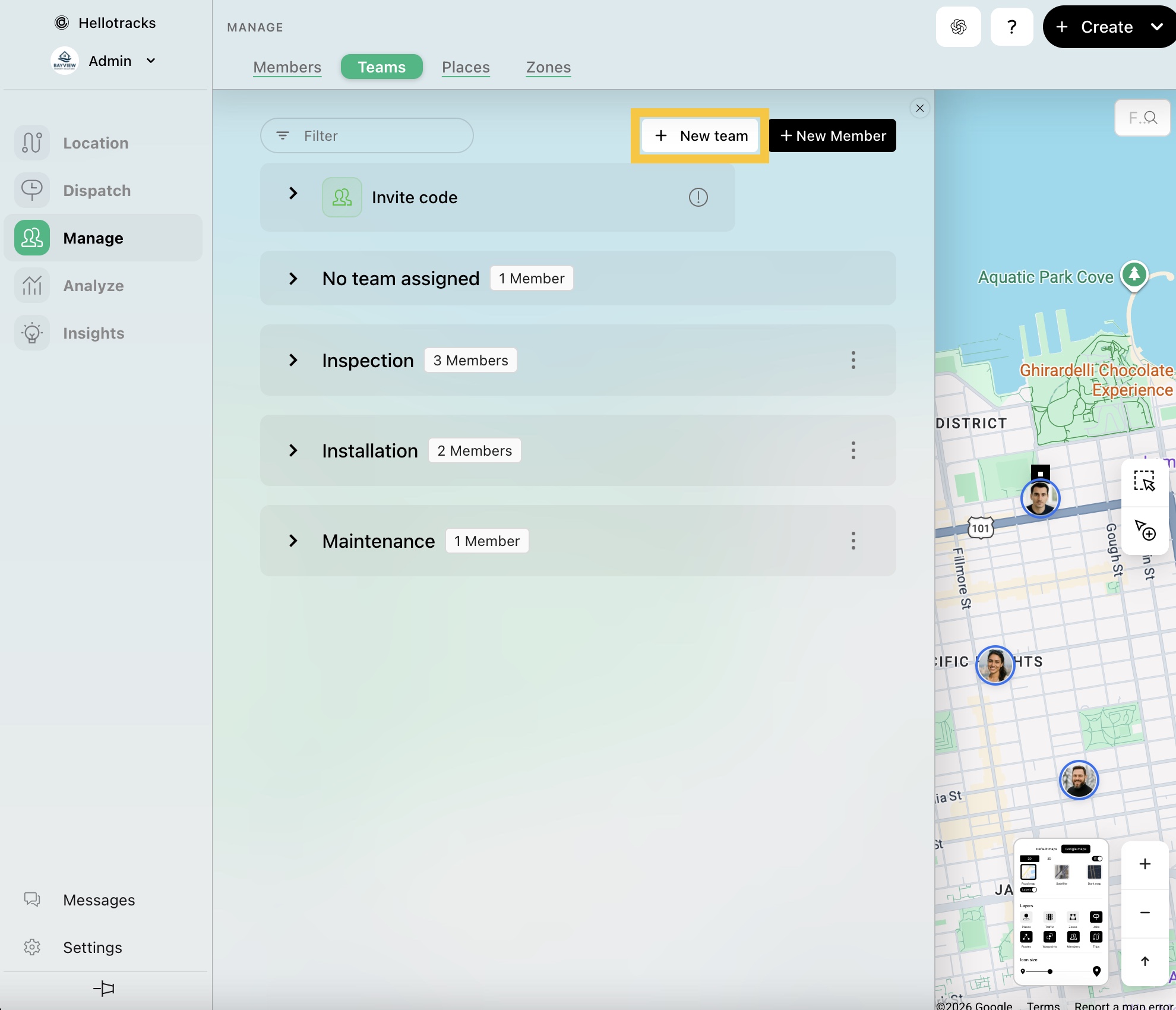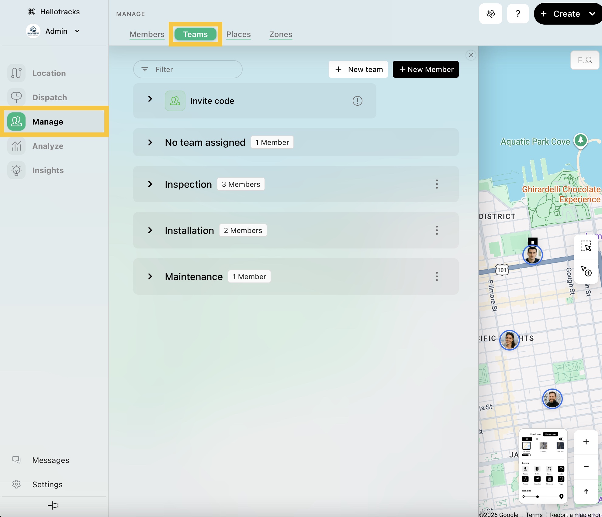 Step 1: Go to Manage from the main menu, then select Teams.