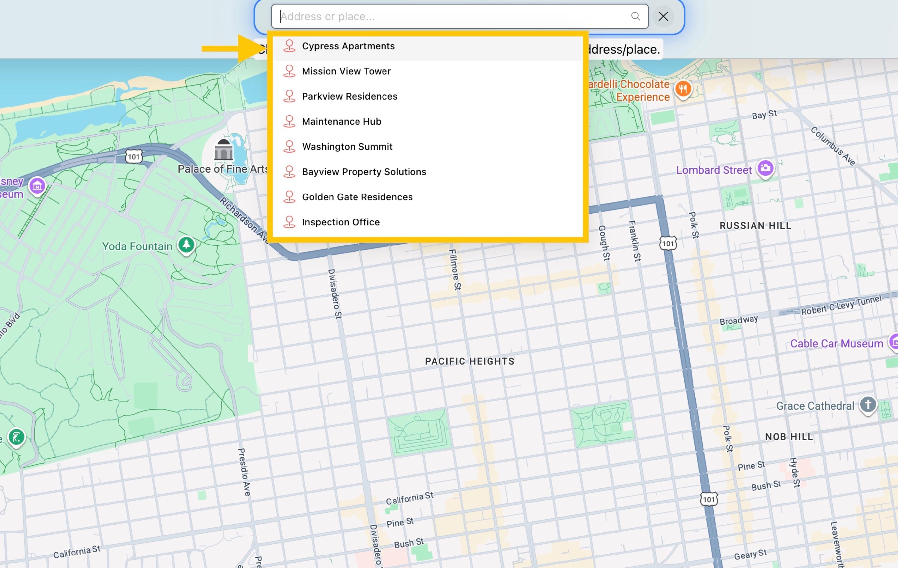 In Dispatch, when creating a Job, you can add a saved Place as the Job address. This is useful for Jobs that occur at a location your team members visit frequently.