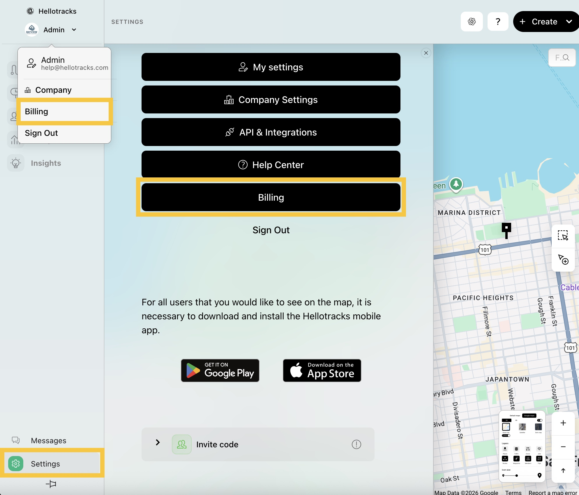 This guide shows Administrators how to access billing information in their Hellotracks Business account.